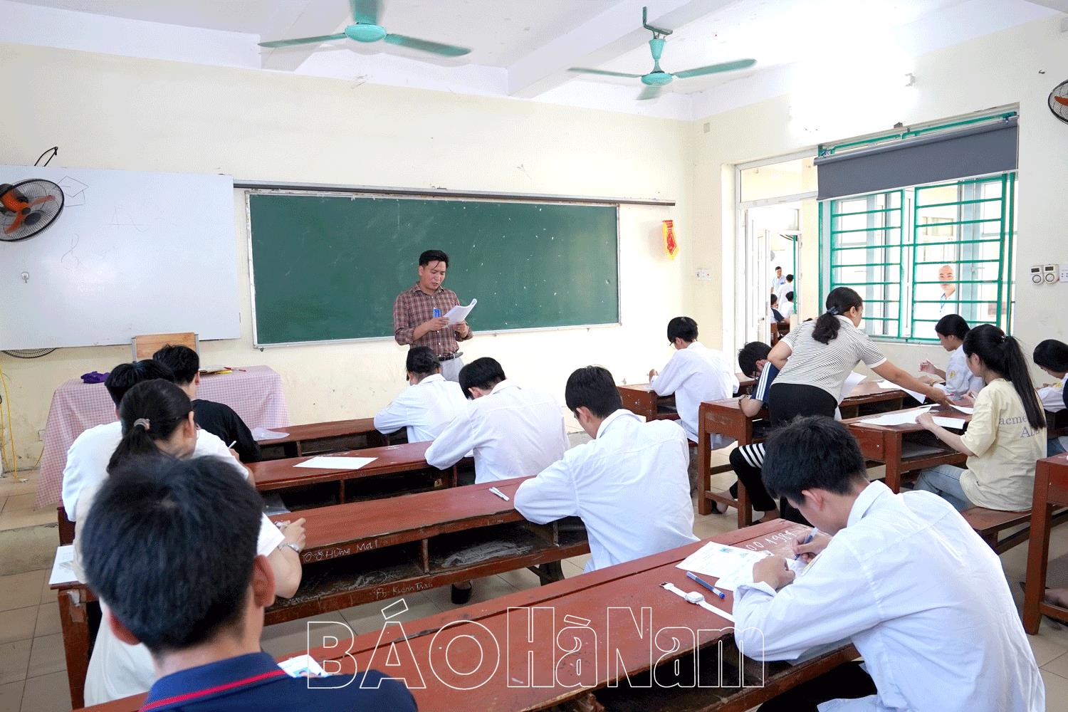 Ban chỉ đạo Kỳ thi kiểm tra công tác coi thi tại điểm thi Trường THPT C Phủ Lý.Đoàn kiểm tra động viên cán bộ, giáo viên của tỉnh và Bộ GD&ĐT làm nhiệm vụ ở điểm thi Trường THPT C Phủ Lý.