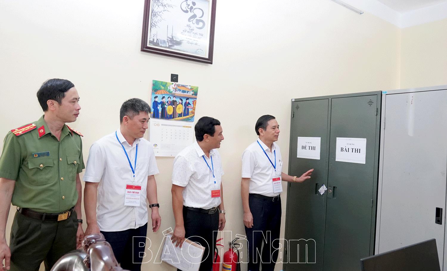 Đoàn kiểm tra khu vực cất giữ bài thi, đề thi ở điểm thi Trường THPT C Phủ Lý.Ban Chỉ đạo Kỳ thi kiểm tra khu vực bảo quản đề thi, bài thi tại điểm thi Trường THPT A Duy Tiên.