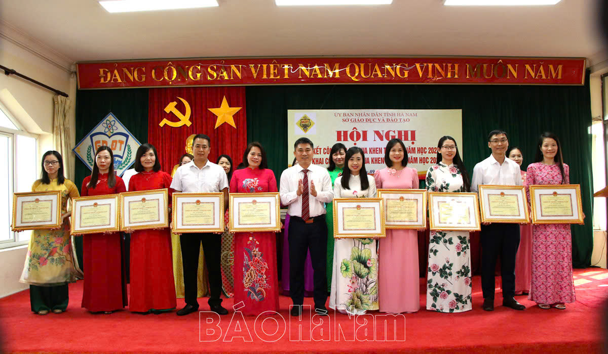 Tại hội nghị, trên 250 lượt tập thể, cá nhân của ngành được UBND tỉnh, Bộ GD&ĐT khen thưởng. Trong đó: 30 tập thể, 71 cá nhân được Bộ trưởng Bộ GD&ĐT tặng bằng khen vì có thành tích tiêu biểu, xuất sắc trong phong trào thi đua “Đổi mới, sáng tạo trong quản lý, giảng dạy và học tập” năm học 2023-2024; 54 tập thể có thành tích xuất sắc trong phong trào thi đua năm học 2023-2024 được UBND tỉnh tặng danh hiệu “Tập thể lao động xuất sắc”; 48 cá nhân có thành tích xuất sắc tiêu biểu trong số những cá nhân liên tục đạt danh hiệu “Chiến sỹ thi đua cơ sở” từ năm học 2022-2023 đến năm học 2023-2024 được tặng danh hiệu “Chiến sỹ thi đua tỉnh Hà Nam”; 19 tập thể, 37 cá nhân được tặng Bằng khen của Chủ tịch UBND tỉnh; hai nhà giáo được Bộ GD&ĐT tặng Bằng khen “Nhà giáo tiêu biểu năm 2024”.