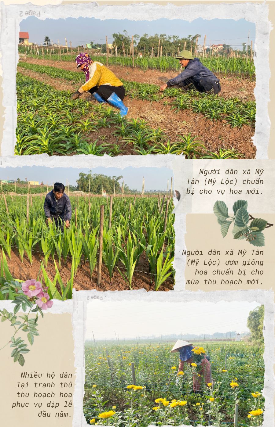 Sau Tết, tại các vùng rau màu, nông dân các địa phương cũng đang tập trung thu hoạch các loại cây trồng vụ Đông, làm đất để gieo trồng rau vụ Xuân. Với các loại cây màu như ngô, lạc... người dân cũng chuẩn bị các điều kiện để chuẩn bị xuống giống. Trên các vùng đất chuyển đổi ở các xã Mỹ Tân (Mỹ Lộc), Nam Thắng (Nam Trực), người nông dân cũng tranh thủ ươm cỏ, ươm giống hoa với mong muốn "mưa thuận, gió hòa" góp phần tăng sản lượng, nâng cao thu nhập.