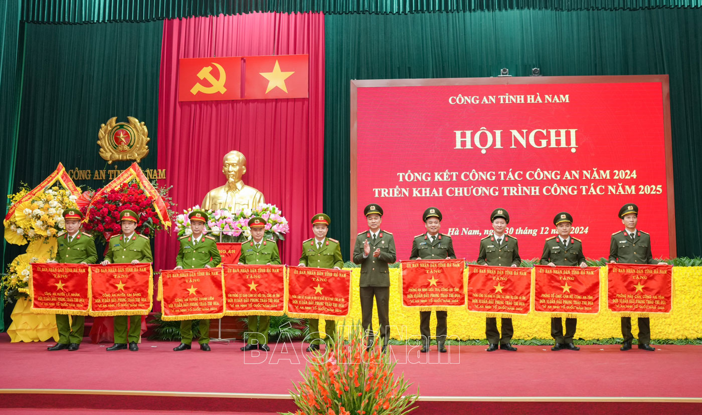 Tại hội nghị, thừa ủy quyền của Chủ tịch nước, đồng chí Chủ tịch UBND tỉnh Trương Quốc Huy đã trao Huân chương chiến công Hạng Ba cho Đại tá Đỗ Hoài Nam, Phó Giám đốc Công an tỉnh. Nhiều tập thể, cá nhân có thành tích xuất sắc trong công tác năm 2024 đã được biểu dương, khen thưởng. Cũng tại hội nghị, Công an tỉnh Hà Nam đã phát động phong trào thi đua “Vì an ninh Tổ quốc” năm 2025.