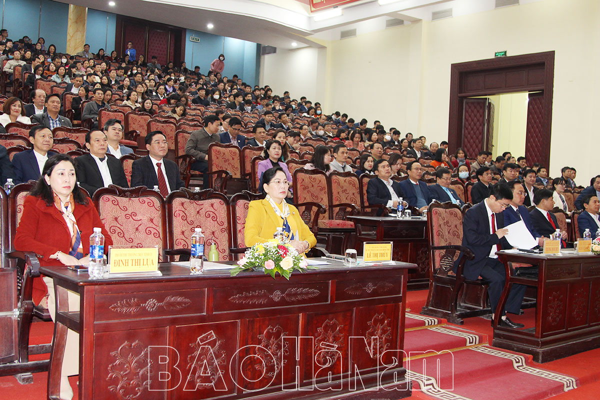 Dự, chủ trì tại điểm cầu Nhà văn hóa trung tâm tỉnh có các đồng chí: Lê Thị Thủy, Ủy viên Trung ương Đảng, Bí thư Tỉnh ủy, Chủ tịch HĐND tỉnh; Đinh Thị Lụa, Phó Bí thư Thường trực Tỉnh ủy; Trương Quốc Huy, Phó Bí thư Tỉnh ủy, Chủ tịch UBND tỉnh, Trưởng đoàn Đại biểu Quốc hội tỉnh; các Ủy viên Ban Thường vụ (BTV) Tỉnh ủy; Thường trực HĐND, lãnh đạo UBND tỉnh; ủy viên BCH Đảng bộ tỉnh; lãnh đạo các sở, ban, ngành, MTTQ và các tổ chức chính trị- xã hội của tỉnh; lãnh đạo Văn phòng Tỉnh ủy, Văn phòng Đoàn ĐBQH và HĐND tỉnh, Văn phòng UBND tỉnh; Trường Chính trị tỉnh và đại biểu thuộc Đảng ủy Khối các cơ quan, Khối Doanh nghiệp tỉnh. Dự tại điểm cầu các huyện, thị xã, thành phố, các đảng bộ trực thuộc tỉnh có các đồng chí là thường trực cấp ủy, ủy viên BTV, ủy viên BCH đảng bộ và hơn 40.700 CBĐV trong toàn Đảng bộ tỉnh.