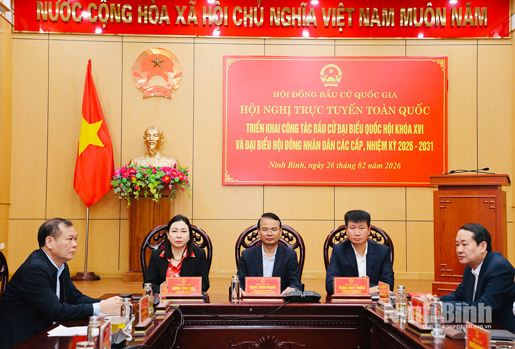 Ngày 26/2, tại Nhà Quốc hội, Hội đồng Bầu cử quốc gia tổ chức Hội nghị trực tuyến toàn quốc triển khai công tác bầu cử đại biểu Quốc hội khóa XVI và đại biểu HĐND các cấp nhiệm kỳ 2026-2031. Hội nghị được kết nối trực tuyến với 34 điểm cầu cấp tỉnh và 3.321 điểm cầu cấp xã.