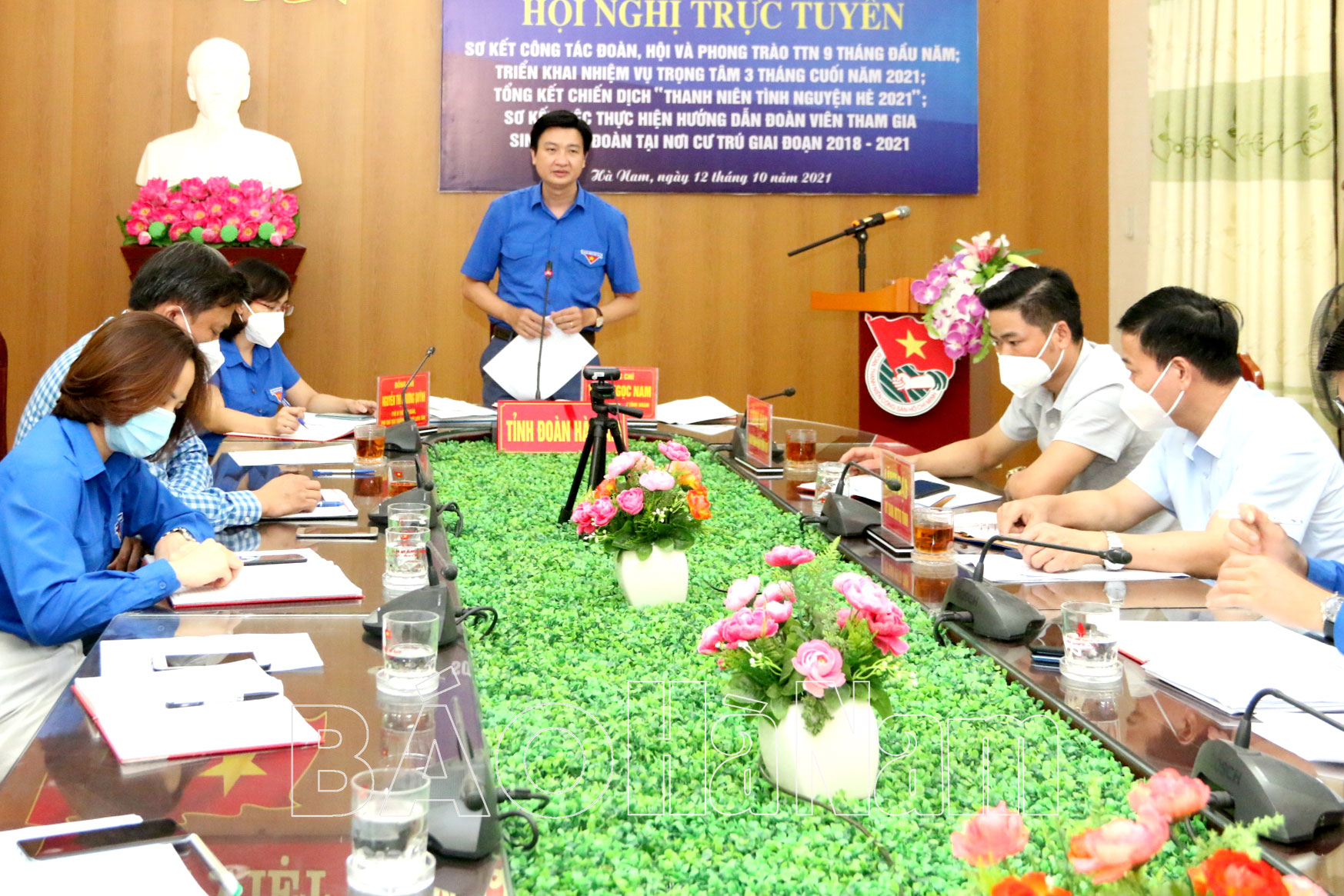 Sáng 12/10, tại điểm cầu Hội trường cơ quan Tỉnh đoàn và 119 điểm cầu trực tuyến trên địa bàn tỉnh, Ban Thường vụ (BTV) Tỉnh đoàn, Hội Liên hiệp thanh niên tỉnh tổ chức Hội nghị sơ kết Công tác đoàn, hội và phong trào thanh thiếu nhi (TTN) 9 tháng đầu năm, triển khai nhiệm vụ trọng tâm 3 tháng cuối năm; tổng kết Chiến dịch Thanh niên tình nguyện (TNTN) hè 2021; sơ kết việc thực hiện hướng dẫn đoàn viên tham gia hoạt động đoàn tại nơi cư trú giai đoạn 2018-2021; tuyên dương các cá nhân tiêu biểu trong công tác phòng, chống dịch Covid -19; tuyên dương Gia đình trẻ tiêu biểu năm 2021.