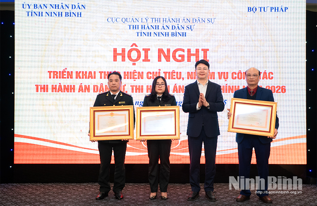 Về nhiệm vụ, giải pháp chủ yếu năm 2026, THADS tỉnh Ninh Bình xác định: Tiếp tục tăng cường chỉ đạo các đơn vị nghiêm túc thực hiện các văn bản quy phạm pháp luật và các văn bản hướng dẫn, chỉ đạo của lãnh đạo Bộ Tư pháp, Cục Quản lý THADS, Tỉnh uỷ, HĐND, UBND tỉnh đối với công tác THADS, theo dõi thi hành án hành chính; tập trung quyết liệt, giải quyết dứt điểm các vụ việc, thi hành án liên quan đến tín dụng, ngân hàng. Tổ chức triển khai thực hiện hiệu quả Luật THADS năm 2025 và các văn bản hướng dẫn thi hành, đặc biệt chú trọng công tác triển khai Luật THADS năm 2025 đã được Quốc hội (khoá XV) thông qua có hiệu lực thi hành từ ngày 1/7/2026.