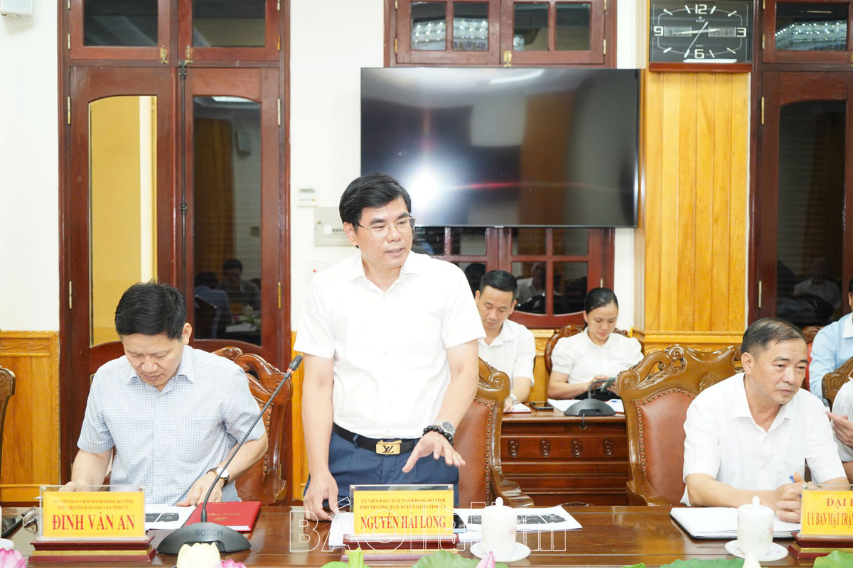 Đồng chí Nguyễn Hải Long, TUV, Phó trưởng ban Thường trực Ban Tuyên giáo Tỉnh ủy phát biểu tại hội nghị.