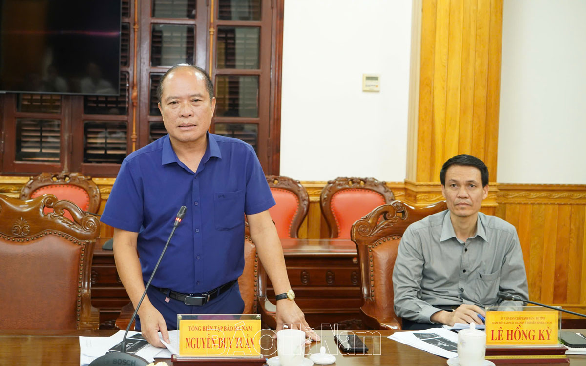 Đồng chí Nguyễn Duy Tuấn, Tổng Biên tập Báo Hà Nam phát biểu tại hội nghị.