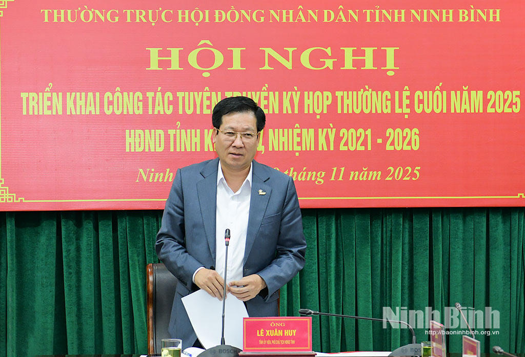Phát biểu kết luận, đồng chí Lê Xuân Huy, Tỉnh ủy viên, Phó Chủ tịch HĐND tỉnh trân trọng cảm ơn sự phối hợp, đồng hành của các cơ quan báo chí trong công tác tuyên truyền các kỳ họp thời gian qua. Đồng chí nhấn mạnh, kỳ họp thường lệ cuối năm 2025 là kỳ họp có ý nghĩa đặc biệt: vừa là kỳ họp cuối năm đầu tiên của tỉnh sau sắp xếp, vừa là kỳ họp cuối năm cuối cùng của nhiệm kỳ 2021-2026. Do đó, đồng chí đề nghị các cơ quan thông tấn báo chí Trung ương và địa phương đẩy mạnh tuyên truyền đầy đủ, khách quan, kịp thời, toàn diện, trọng tâm, trọng điểm về các nội dung chương trình Kỳ họp. Trong đó, chú trọng tuyên truyền nội dung, chương trình kỳ họp; kết quả hoạt động của HĐND tỉnh, tình hình thực hiện kế hoạch phát triển kinh tế - xã hội của tỉnh năm 2025, phương hướng, nhiệm vụ năm 2026; những chủ trương lớn được thông qua tại kỳ họp. Trong thời gian diễn ra kỳ họp, đưa tin kịp thời, chính xác nội dung, diễn biến kỳ họp. Đề nghị Báo và phát thanh, truyền hình Ninh Bình truyền hình, truyền thanh trực tiếp phiên khai mạc, phiên chất vấn và phiên bế mạc; đăng tải toàn văn bài phát biểu chỉ đạo của đồng chí Bí thư Tỉnh ủy, diễn văn khai mạc, bế mạc kỳ họp của đồng chí Phó Bí thư Tỉnh ủy, Chủ tịch HĐND tỉnh. Tăng cường công tác phỏng vấn, lấy ý kiến phản ánh cũng như các kiến nghị, đề xuất của cử tri, Nhân dân về nội dung kỳ họp.