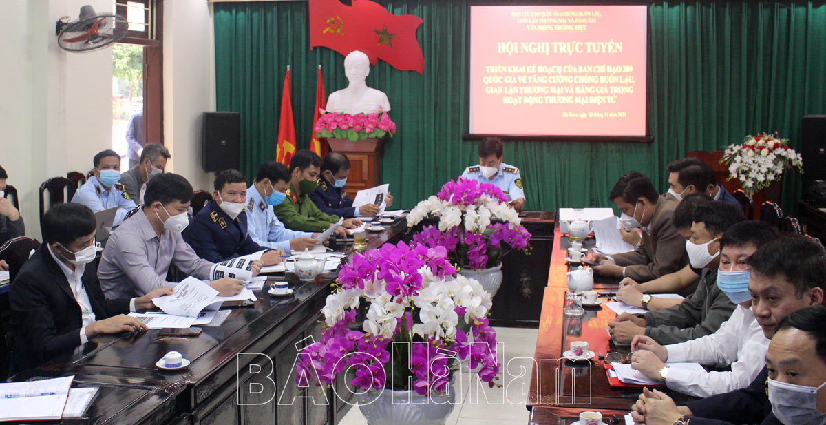 Sáng 12/11, Cục Quản lý thị trường (QLTT) Hà Nam đã dự hội nghị trực tuyến triển khai kế hoạch của Ban Chỉ đạo (BCĐ) 389 Quốc gia về tăng cường chống buôn lậu, gian lận thương mại và hàng giả trong hoạt động thương mại điện tử (TMĐT). Dự hội nghị còn có đại diện các đơn vị thành viên BCĐ 389 tỉnh.