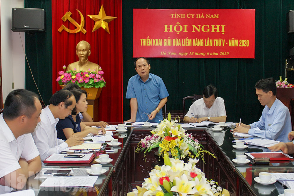 Để việc hưởng ứng Giải Búa liềm vàng lần thứ V - năm 2020 đạt chất lượng, hiệu quả, hội nghị đã tập trung thảo luận đưa ra một số nhiệm vụ giải pháp: Các cấp, ngành phối hợp, cung cấp đầy đủ thông tin cho cơ quan báo chí. Đối với các cơ quan báo chí cần lựa chọn phóng viên thực sự có năng lực để tham gia viết bài dự giải; vấn đề lựa chọn viết phải thực sự điển hình, có tính phát hiện. Đồng thời, các đại biểu đề nghị Ban chỉ đạo định kỳ họp đánh giá tiến độ triển khai thực hiện Giải Búa liềm vàng lần thứ V - năm 2020, từ đó có giải pháp kịp thời tháo gỡ những khó khăn, vướng mắc... Phát biểu kết luận hội nghị, đồng chí Đặng Đình Thoảng, Ủy viên BTV Tỉnh ủy, Trưởng Ban Tổ chức Tỉnh ủy, Trưởng Ban chỉ đạo đề nghị các cấp, ngành tiếp tục quán triệt sâu sắc mục đích, ý nghĩa của Giải Búa liềm vàng lần thứ V- năm 2020, động viên đông đảo các đối tượng tham gia; đảm bảo tất các đảng bộ trong tỉnh đều có tác phẩm dự giải, phấn đấu có nhiều tác giả, tác phẩm chất lượng tham dự giải và được triển khai đồng đều ở tất cả các loại hình báo chí. Các cơ quan báo chí trong phạm vi quản lý xây dựng chương trình, kế hoạch tuyên truyền về công tác xây dựng Đảng, định hướng thông tin, dư luận vào những vấn đề đang được dư luận quan tâm.