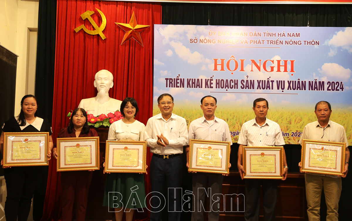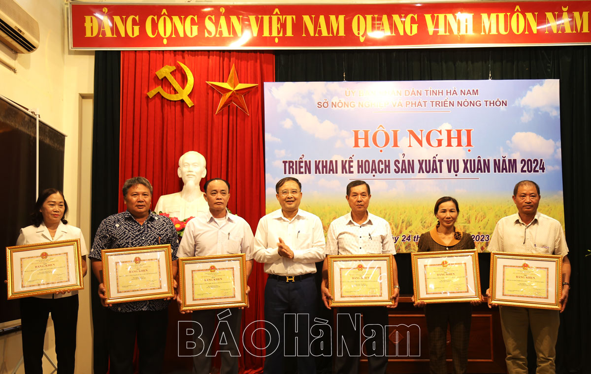 Tại hội nghị, các tập thể, cá nhân có thành tích xuất sắc trong sản xuất vụ xuân 2023 được tặng Bằng khen của UBND tỉnh.