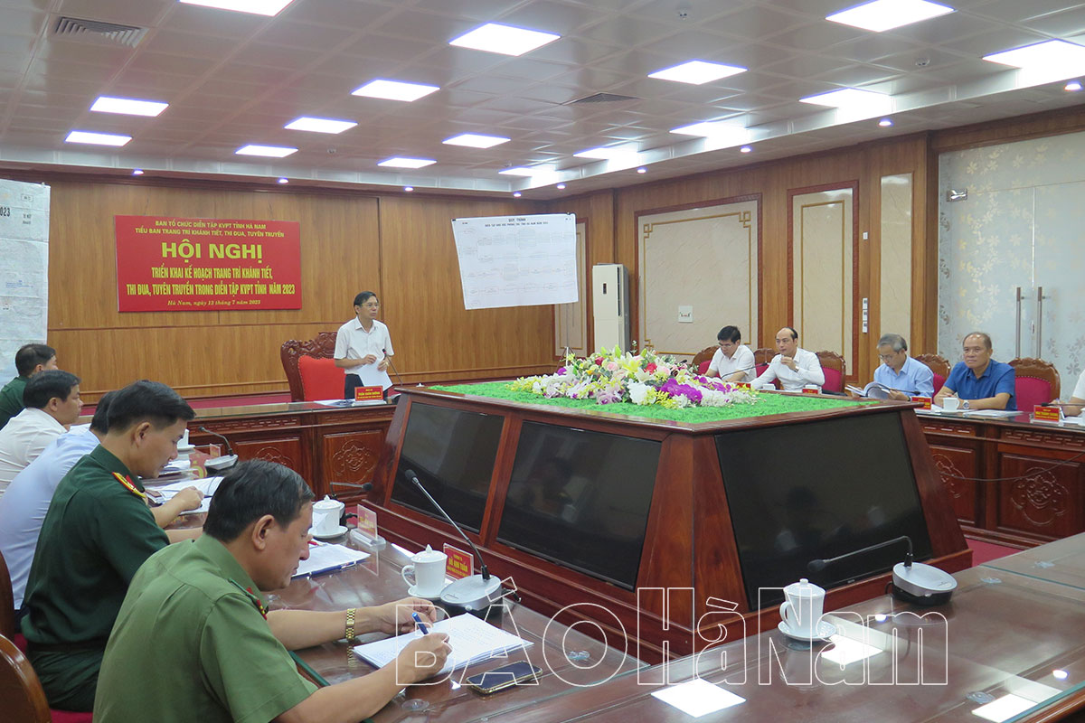 Sáng 13/7, Tiểu ban trang trí khánh tiết, thi đua, tuyên truyền trong diễn tập khu vực phòng thủ (KVPT) tỉnh năm 2023 đã tổ chức hội nghị triển khai kế hoạch thực hiện nhiệm vụ. Đồng chí Trần Xuân Dưỡng, TUV, Phó Chủ tịch UBND tỉnh, Phó Trưởng Ban tổ chức diễn tập tỉnh, Trưởng Tiểu ban trang trí khánh tiết, thi đua, tuyên truyền trong diễn tập KVPT tỉnh chủ trì hội nghị. Tham dự hội nghị có các đồng chí đại diện các cơ quan thành viên Tiểu ban trang trí khánh tiết, thi đua, tuyên truyền trong diễn tập KVPT tỉnh.
