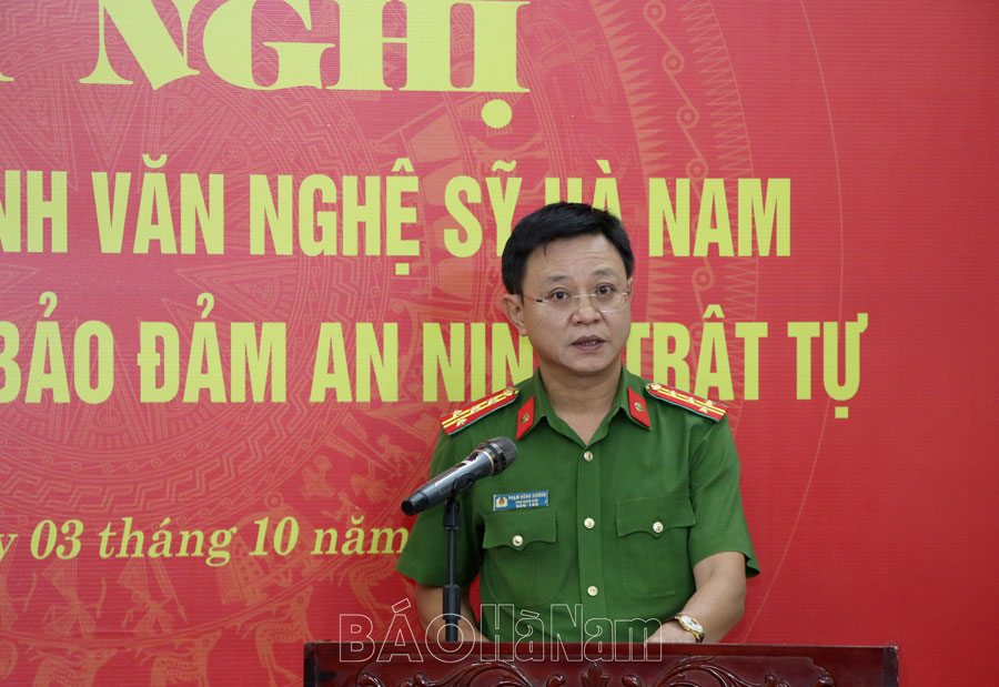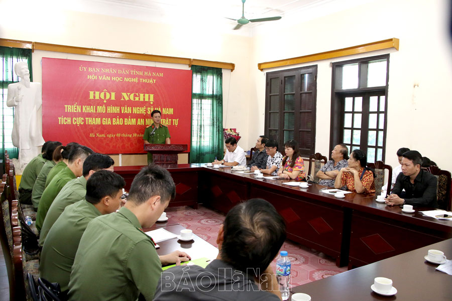 Phát biểu tại hội nghị, lãnh đạo Công an tỉnh Hà Nam đánh giá cao việc tổ chức triển khai mô hình của Hội VHNT. Để mô hình hoạt động hiệu quả, phát huy tốt vai trò, trách nhiệm của văn nghệ sỹ trong thực hiện nhiệm vụ bảo vệ an ninh quốc gia, giữ gìn trật tự an toàn xã hội, lãnh đạo Công an tỉnh đề nghị: Hội VHNT tổ chức quán triệt, phổ biến, tuyên truyền các tiêu chí, nội dung, biện pháp, ý nghĩa thiết thực của mô hình đến cán bộ, hội viên nhằm thúc đẩy sáng tác những tác phẩm VHNT có nội dung định hướng dư luận, vận động nhân dân tham gia xây dựng tỉnh giàu đẹp, văn minh; hội, các chi hội, câu lạc hội trực thuộc hội làm tốt công tác phối hợp thông tin với công an các đơn vị, địa phương trong tỉnh, kịp thời nhận diện, đấu tranh chống quan điểm sai trái, thù địch, lên án hành vi tiêu cực.