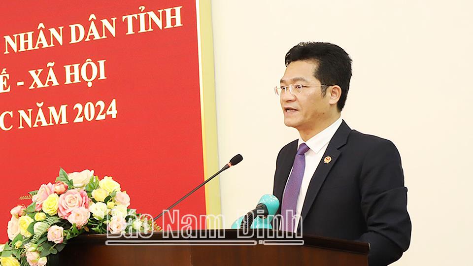 Hội nghị đã nghe báo cáo khái quát kết quả thực hiện nhiệm vụ phát triển KT-XH năm 2023 và các chỉ tiêu kế hoạch, nhiệm vụ, giải pháp phát triển KT-XH; Kế hoạch đầu tư công trung hạn từ nguồn NSNN giai đoạn 2021-2025 điều chỉnh và chỉ tiêu kế hoạch năm 2024; Dự toán NSNN năm 2024. Về nhiệm vụ phát triển KT-XH năm 2024, các cấp chính quyền, ngành chức năng cần tập trung thực hiện 7 nhóm nhiệm vụ, giải pháp để đạt 14 chỉ tiêu KT-XH, môi trường. Cụ thể, phấn đấu tổng sản phẩm GRDP (giá so sánh 2010) tăng từ 9,5-10,5%; cơ cấu kinh tế nông, lâm nghiệp và thuỷ sản đạt 16%, công nghiệp, xây dựng, dịch vụ đạt 85%; chỉ số sản xuất công nghiệp (IIP) tăng từ 14,5% trở lên; giá trị xuất khẩu đạt từ 3,3 tỉ USD trở lên; tổng vốn đầu tư toàn xã hội tăng từ 18% trở lên… Dự toán thu NSNN năm 2024 trên địa bàn đạt trên 12.030 tỷ đồng. Kế hoạch vốn đầu tư công trung hạn giai đoạn 2021-2025 của tỉnh điểu chỉnh với tổng số là 49.450,098 tỷ đồng, trong đó vốn ngân sách Trung ương là 6.467,031 tỷ đồng; vốn ngân sách địa phương là 42.983,067 tỷ đồng.