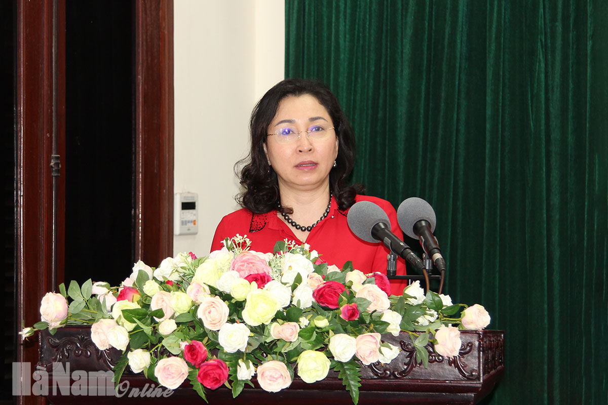 Đồng chí Đinh Thị Lụa, Phó Bí thư Thường trực Tỉnh ủy phát biểu chỉ đạo hội nghị.