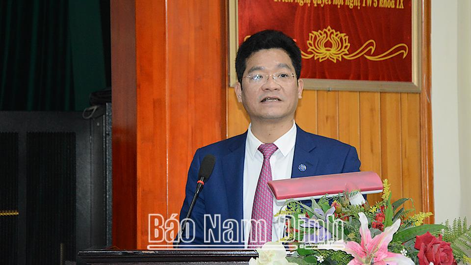 | Đồng chí Trần Anh Dũng, Ủy viên Ban TVTU, Phó Chủ tịch Thường trực UBND tỉnh phát biểu tại hội nghị. |