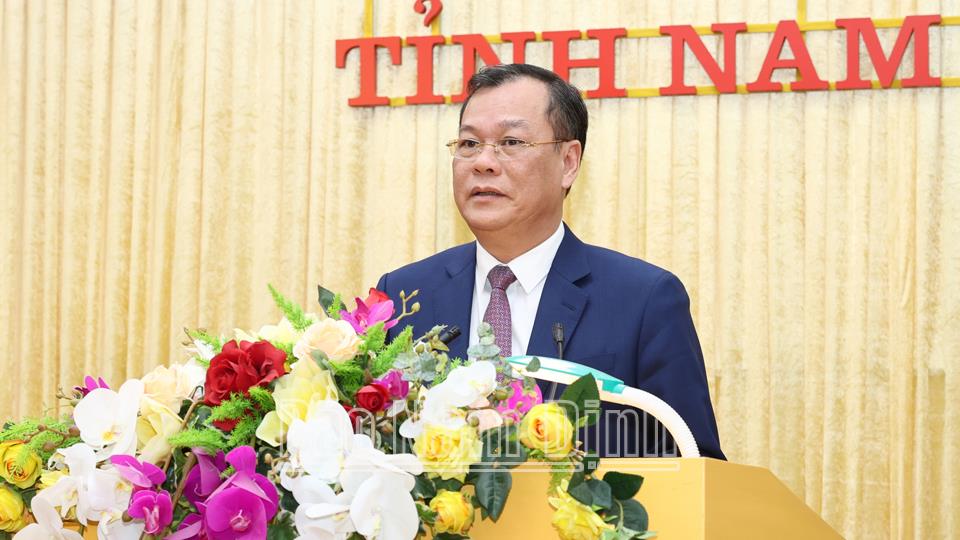 | Đồng chí Phó Bí thư Thường trực Tỉnh uỷ Lê Quốc Chỉnh phát biểu chỉ đạo tại hội nghị. |