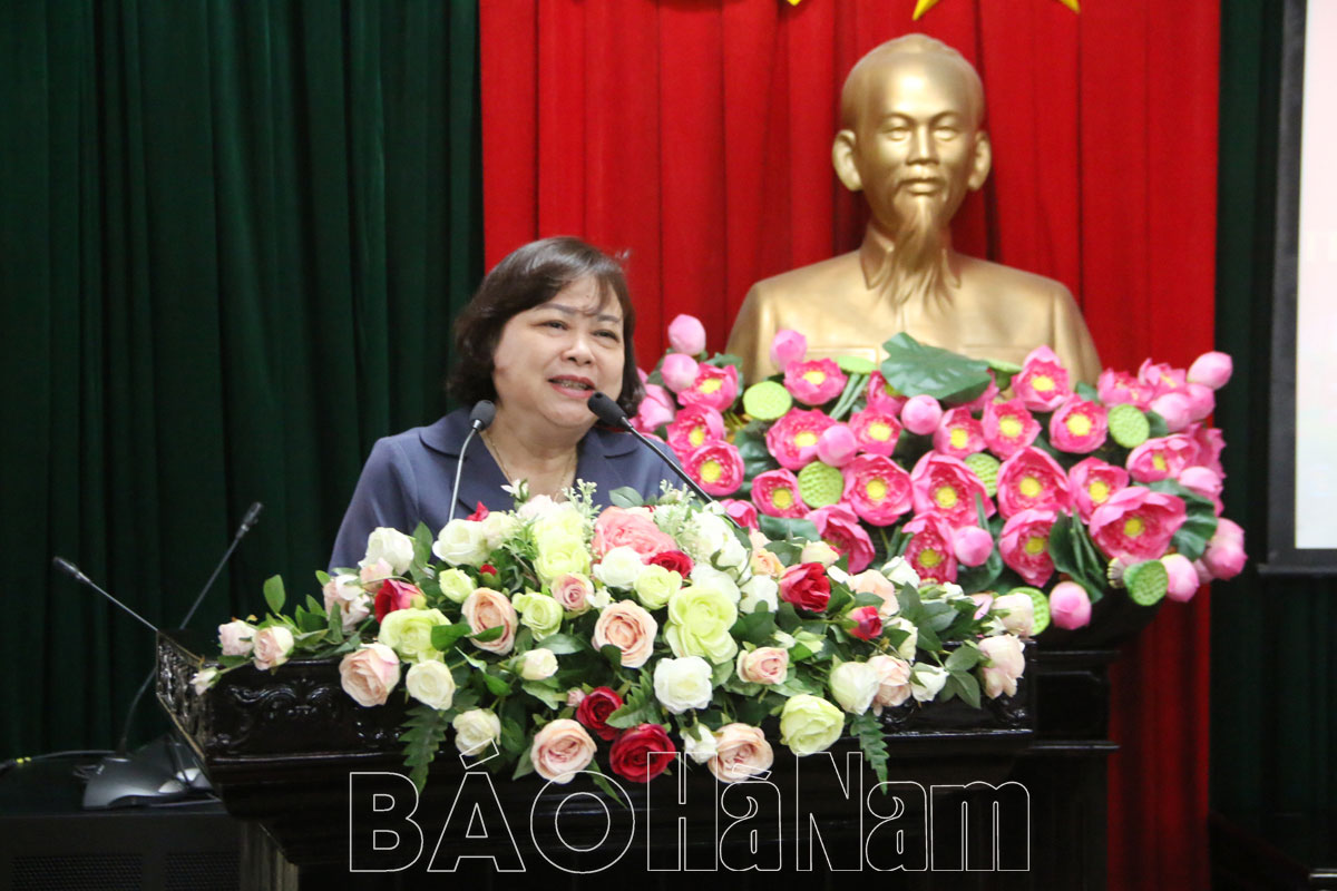 Đồng chí Lê Thị Thanh Hà, Ủy viên Ban Thường vụ Tỉnh ủy, Trưởng Ban Tuyên giáo Tỉnh ủy phát biểu kết luận hội nghị
