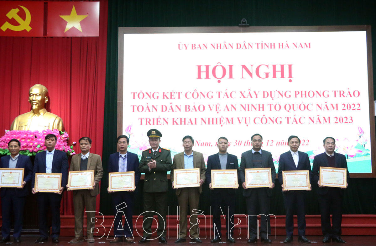 Nhân dịp này, 03 tập thể có thành tích xuất sắc đã được UBND tỉnh tặng Cờ thi đua xuất sắc trong xây dựng phong trào Toàn dân bảo vệ ANTQ năm 2022 ; 3 cá nhân được nhận Kỷ niệm chương của Bộ Công an; 08 tập thể được nhận Bằng khen của Bộ Công an; 13 tập thể, 08 cá nhân được Chủ tịch UBND tỉnh tặng Bằng khen vì có thành tích xuất sắc trong xây dựng phong trào Toàn dân bảo vệ ANTQ năm 2022; 6 Ban bảo vệ Tổ dân phố được Chủ tịch UBND tỉnh công nhận danh hiệu Đơn vị quyết thắng./