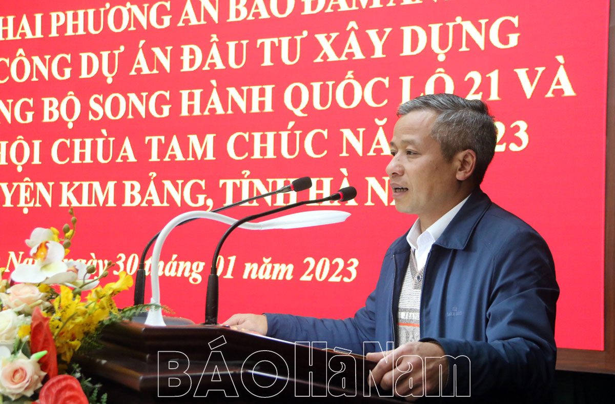 Phát biểu chỉ đạo tại hội nghị, đồng chí Trần Xuân Dưỡng, Tỉnh ủy viên, Phó Chủ tịch UBND tỉnh nhấn mạnh: Trên cơ sở phương án, kế hoạch được xây dựng và phân công cụ thể cho từng đơn vị, các đồng chí được phân công tham gia bảo vệ lễ khởi công dự án đầu tư xây dựng tuyến đường bộ song hành QL21 và Lễ khai hội chùa Tam Chúc năm 2023 chủ động nêu cao tinh thần trách nhiệm trong công tác chỉ đạo, tổ chức thực hiện nghiêm phương án, kế hoạch đảm bảo tuyệt đối an toàn các đoàn đại biểu của Trung ương, địa phương và du khách thập phương về tham dự lễ hội. Cùng với đó, triển khai thực hiện tốt công tác đảm bảo ANTT, TTATGT, phòng chống cháy nổ trên địa bàn, góp phần quan trọng vào thành công vào lễ khởi công và Lễ khai hội chùa Tam Chúc, tạo ấn tượng tốt đẹp trong lòng nhân dân và du khách thập phương về dự lễ hội cũng như về mảnh đất, con người Hà Nam.