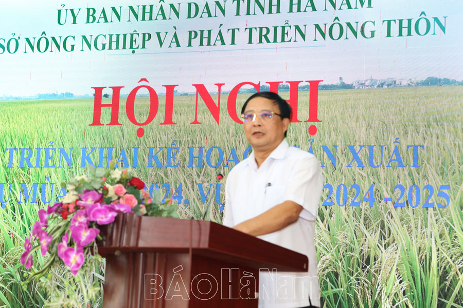 Phát biểu chỉ đạo tại hội nghị, đồng chí Nguyễn Đức Vượng, Tỉnh ủy viên, Phó Chủ tịch UBND tỉnh đánh giá cao kết quả đạt được trong vụ mùa 2023, vụ đông 2023 – 2024. Đối với sản xuất vụ mùa 2024, vụ đông 2024 – 2025 các địa phương, ngành chức năng cần bám sát kế hoạch sản xuất để thực hiện cả về mùa vụ, cơ cấu giống cây trồng; đẩy mạnh chuyển dịch cơ cấu giống cây trồng theo hướng nâng cao năng suất, giá trị hàng hóa; đẩy mạnh liên kết sản xuất, tiêu thụ, chế biến nông sản; tiếp thu và ứng dụng các tiến bộ khoa học – kỹ thuật; đưa máy móc đồng bộ các khâu sản xuất, nhất là khâu gieo cấy bằng cơ giới; đảm bảo đủ nguồn giống, vật tư phân bón; duy trì và nâng cao hiệu quả các mô hình cánh đồng mẫu... Về phía sở NN & PTNT giao các đơn vị chuyên môn triển khai hướng dẫn, chuyển giao khoa học – kỹ thuật cho người dân nhất là những mô hình sản xuất, giống mới. Đồng thời đẩy mạnh chuyển đổi số trong sản xuất, xúc tiến thương mại tiêu thụ nông sản…
