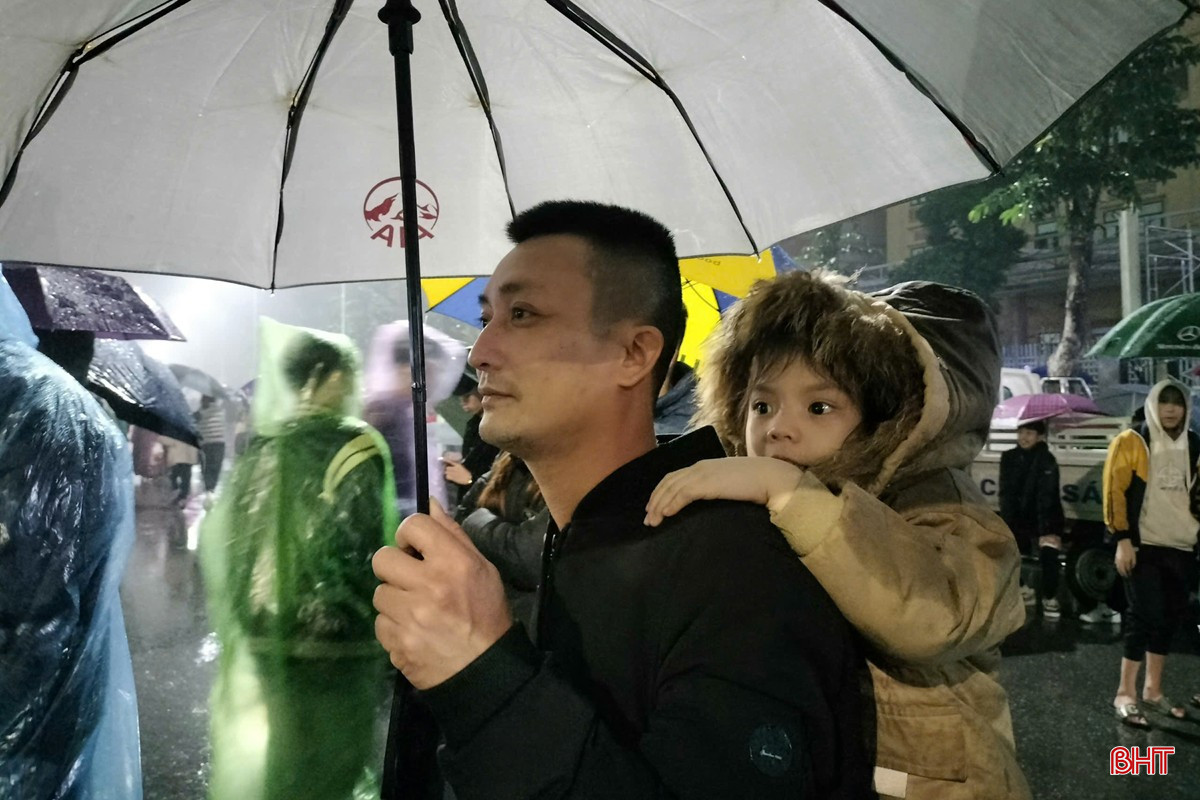 | Thời tiết không thuận lợi nhưng có rất đông người dân đến theo dõi buổi lễ. |