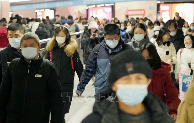 Người dân đeo khẩu trang tại Bắc Kinh, Trung Quốc trong bối cảnh dịch bệnh đường hô hấp lây lan nhanh do virus HMPV, ngày 6/1/2025. Ảnh: Kyodo/TTXVN