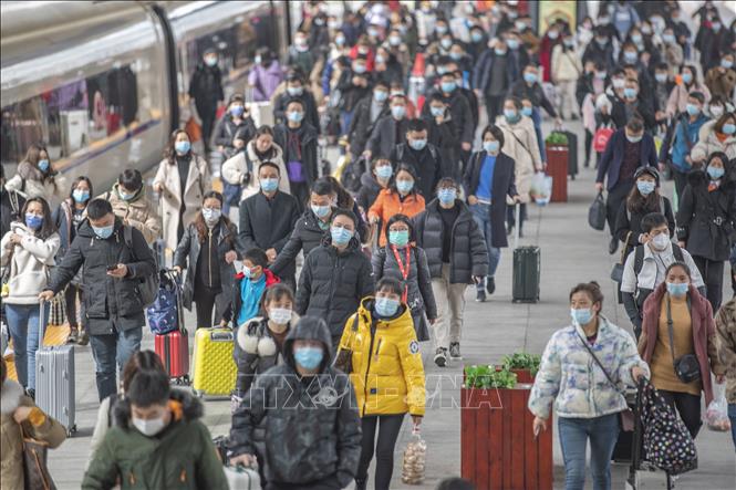 Người dân đeo khẩu trang phòng dịch COVID-19 tại nhà ga tàu hỏa ở Trùng Khánh, Trung Quốc, ngày 17/2/2021. Ảnh minh họa: THX/TTXVN