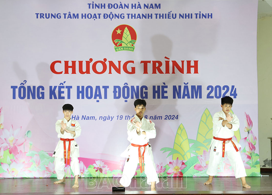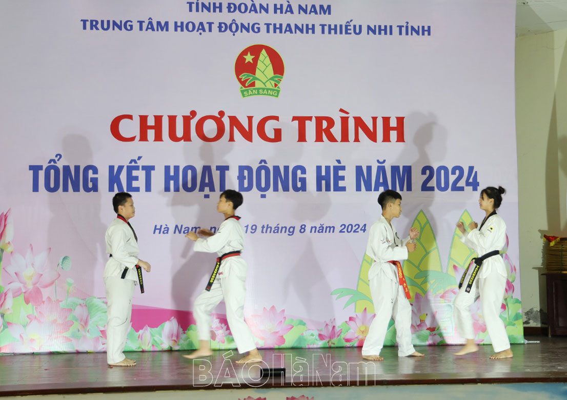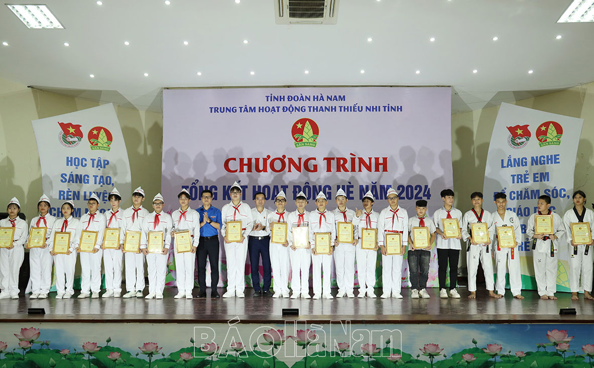 Chiều 19/8, Trung tâm Hoạt động Thanh, thiếu nhi (TTN) tỉnh tổ chức chương trình Tổng kết hoạt động hè năm 2024. Dự chương trình có đại diện lãnh đạo Tỉnh đoàn, Hội đồng Đội tỉnh, Phòng Giáo dục và Đào tạo thành phố Phủ Lý; đại diện một số trường, các thầy cô giáo là tổng phụ trách, cộng tác viên của trung tâm, cùng 200 TTN.