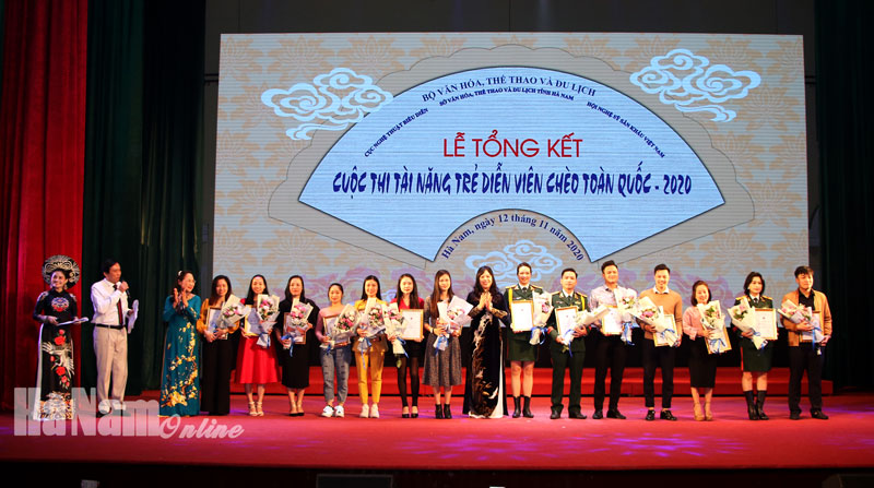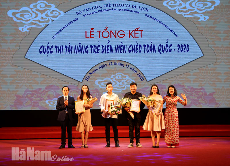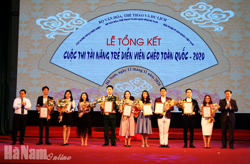 Tối 12/11, tại Nhà văn hóa Trung tâm tỉnh Hà Nam đã diễn ra Lễ tổng kết, bế mạc và trao thưởng Cuộc thi "Tài năng trẻ diễn viên Chèo toàn quốc năm 2020". 32 giải thưởng chính thức đã được trao cho các diễn viên trẻ tài năng, trong đó có 4 diễn viên Trung tâm Văn hóa Nghệ thuật tỉnh Hà Nam đoạt giải gồm 1 HCV, 3 HCB