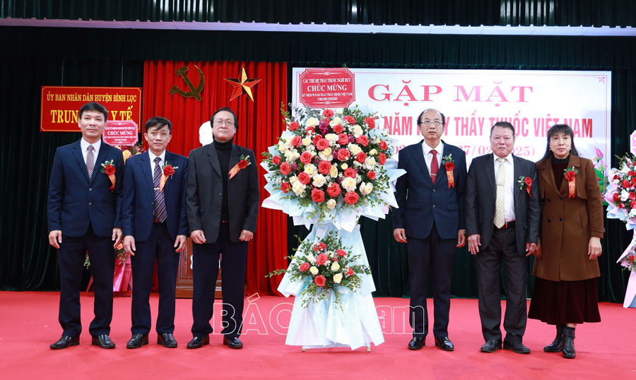 Sáng 23/2, Trung tâm Y tế (TTYT) huyện Bình Lục tổ chức gặp mặt kỷ niệm 70 năm Ngày Thầy thuốc Việt Nam (27/02/1955 - 27/02/2025). Dự chương trình có lãnh đạo UBND, Phòng Y tế, Hội Đông y huyện; các đồng chí nguyên là lãnh đạo, cán bộ TTYT huyện qua các thời kỳ; tập thể cán bộ, nhân viên TTYT huyện, trạm y tế (TYT) các xã, thị trấn, cùng một số doanh nghiệp.