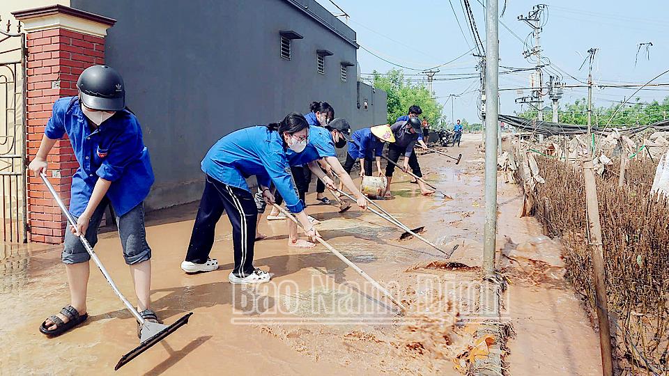 | Hơn 200 đoàn viên Trường Đại học Điều dưỡng Nam Định cùng với lực lượng đoàn xã Mỹ Tân khắc phục hậu quả do mưa bão gây ra tại xã Mỹ Tân.