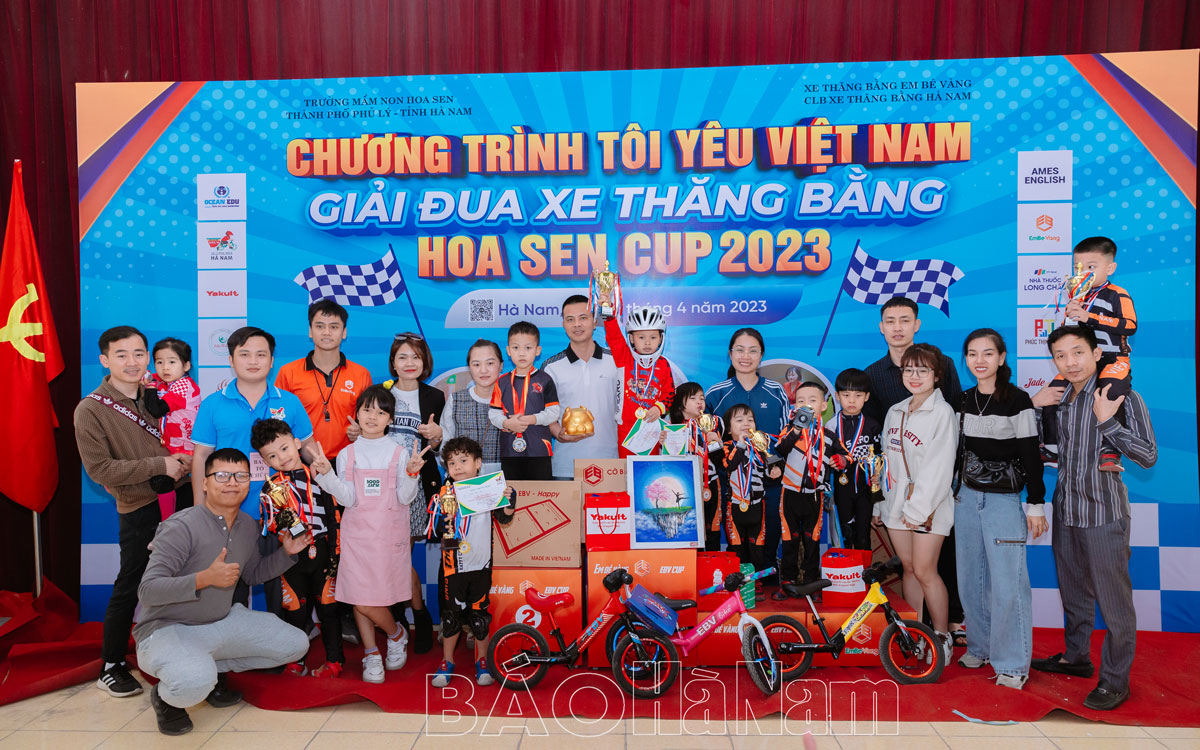 Vừa qua, tại Nhà tập đa năng Trường Cao đẳng Thủy lợi Bắc bộ, Trường Mầm non Hoa Sen phối hợp với CLB Xe thăng bằng Hà Nam- Bike 90 và hãng xe thăng bằng Em bé vàng tổ chức chương trình Tôi yêu Việt Nam "Giải đua xe thăng bằng- Hoa Sen Cup 2023”. Đây là lần đầu tiên giải đua xe thăng bằng được tổ chức tại tỉnh Hà Nam nhằm thực hiện tốt các chuyên đề giáo dục trong trường mầm non.