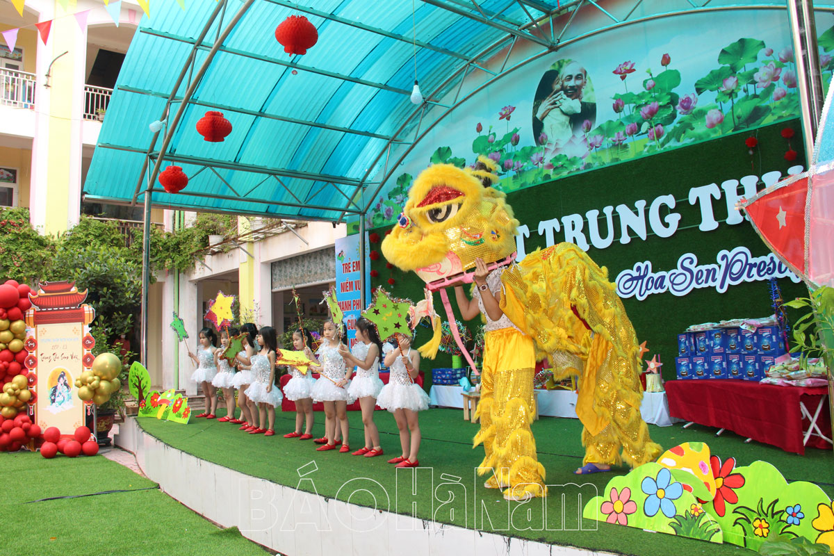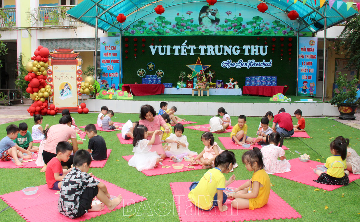Sáng ngày 29/9, hòa chung không khí tưng bừng, phấn khởi của thiếu nhi cả nước, trường Mầm non Hoa Sen (thành phố Phủ Lý) đã tổ chức chương trình Vui tết Trung thu cho các em thiếu nhi nhà trường. Cùng đó, nhiều hoạt động trải nghiệm bổ ích giúp các em hiểu hơn về ý nghĩa ngày Tết Trung thu cũng được nhà trường tổ chức nhân dịp này.