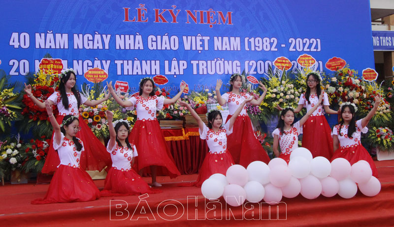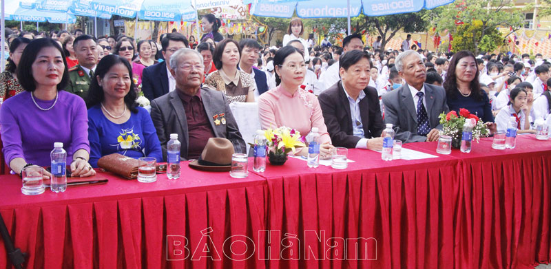 Lãnh đạo Thành ủy Phủ Lý tặng hoa chúc mừng nhà trường.Một tiết mục văn nghệ chào mừng lễ kỉ niệm do học sinh nhà trường biểu diễn.