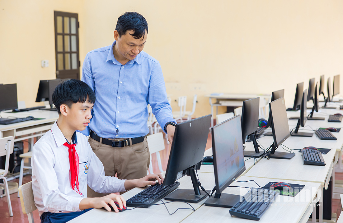Bên cạnh đó, hạ tầng công nghệ thông tin tạo thêm lực đẩy mạnh mẽ cho công tác bồi dưỡng học sinh giỏi. Thầy Trần Mạnh Trường, giáo viên Toán - Tin nhấn mạnh vai trò cốt lõi của hệ thống thiết bị máy móc công nghệ thông tin. Phòng tin học của Trường được trang bị 25 máy tính cấu hình cao. Mạng kết nối nội bộ (LAN) hoạt động ổn định. Hệ thống phần mềm chuyên môn đảm bảo các tiêu chuẩn bảo mật. Cơ sở vật chất đã phục vụ đắc lực cho đội tuyển Tin học thực hành và công tác thi trực tuyến của các bộ môn khác. Nền tảng học liệu số như OLM, Azota được tận dụng triệt để, khâu chấm chữa bài trực quan, lỗ hổng kiến thức được phát hiện và nâng cấp kịp thời.