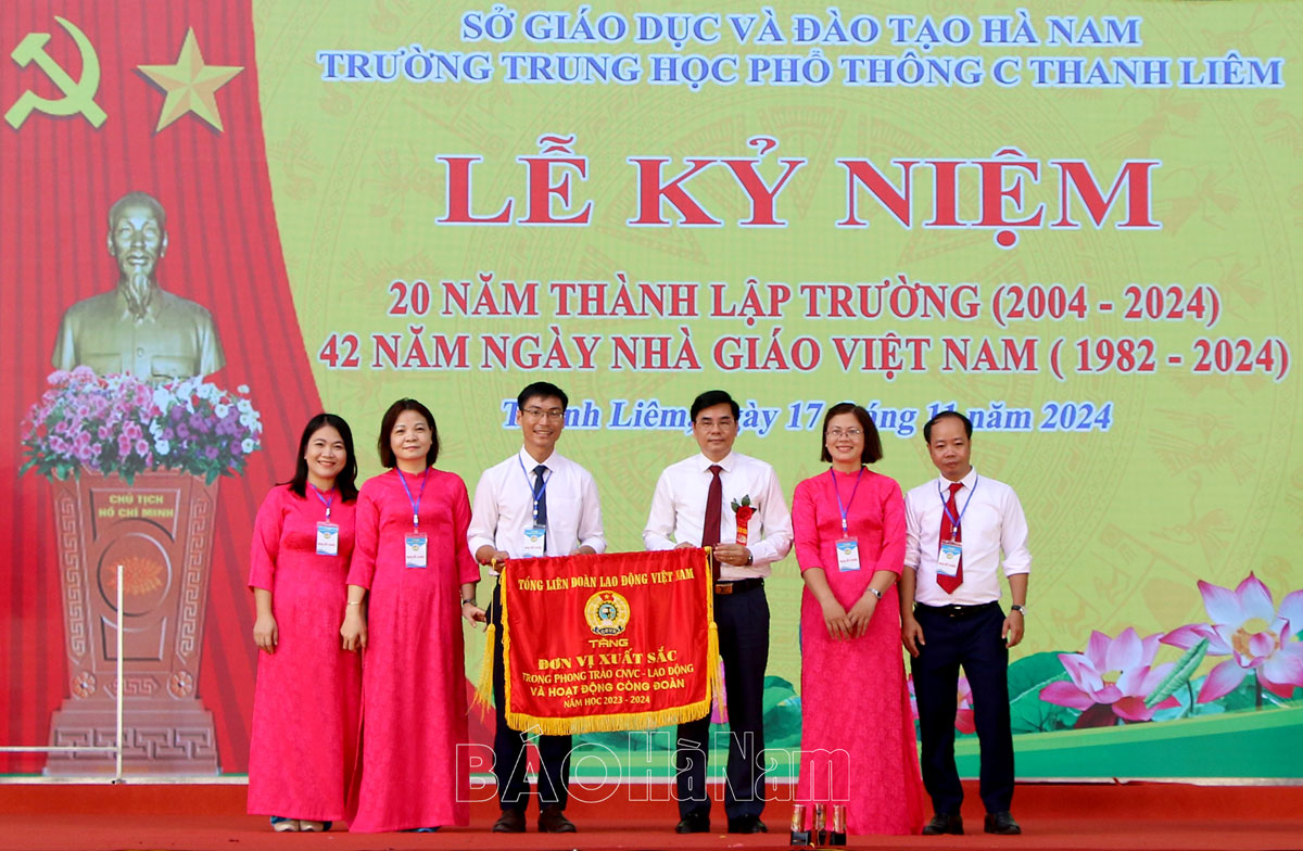 Lãnh đạo Liên đoàn Lao động tỉnh tặng Cờ thi đua xuất sắc cho Công đoàn cơ sở Trường THPT C Thanh Liêm.