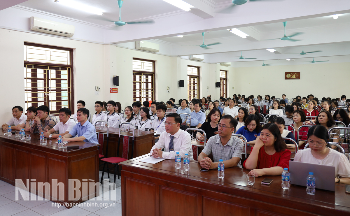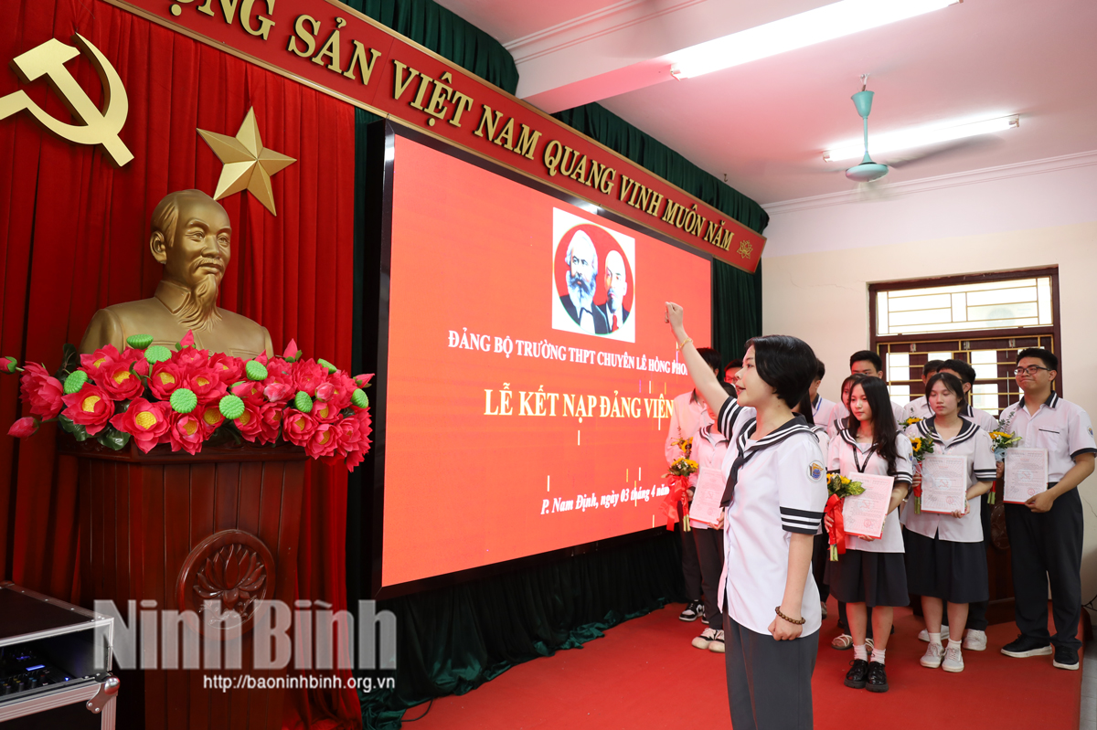 Chiều 3/4, Đảng bộ Trường THPT chuyên Lê Hồng Phong (phường Nam Định, tỉnh Ninh Bình) tổ chức Lễ kết nạp đảng viên cho 13 quần chúng ưu tú là những học sinh đang học tập tại nhà trường.