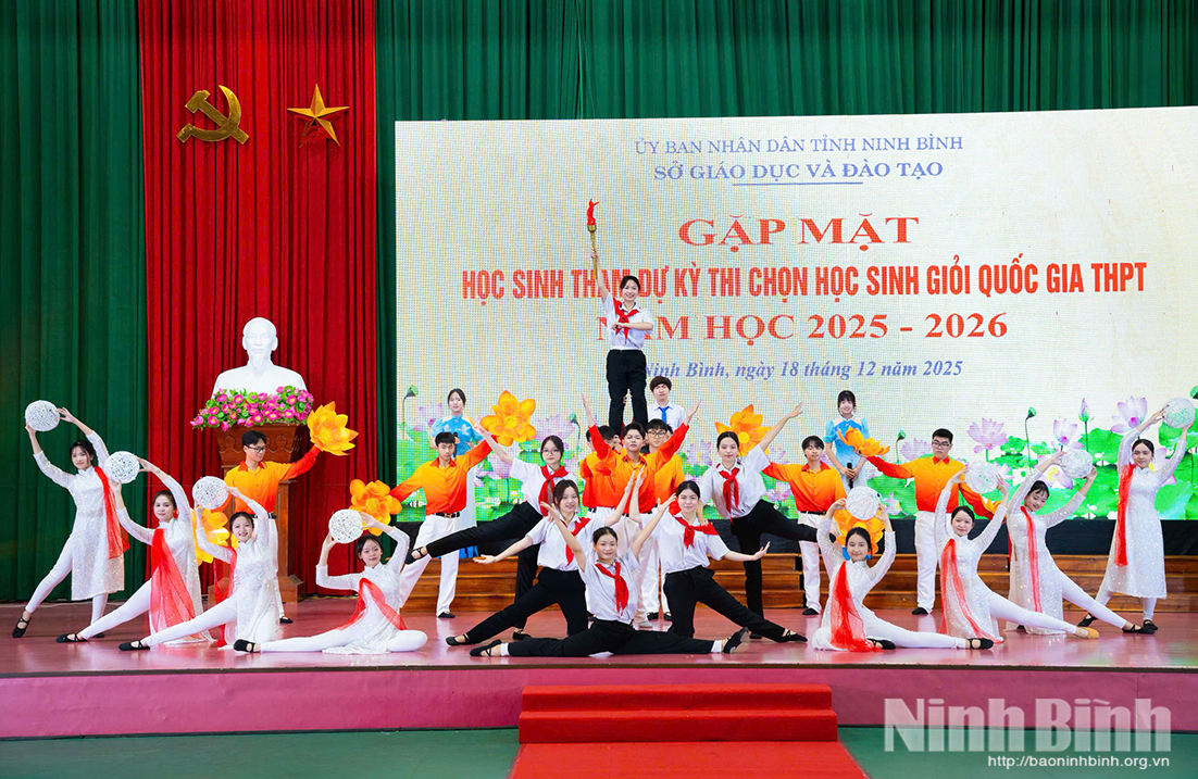 Học sinh Vũ Thành Lâm chia sẻ: “Môi trường học tập tại Chuyên Lương Văn Tụy giúp chúng em trang bị kiến thức nền tảng, đồng thời rèn luyện tư duy logic, bản lĩnh vượt khó. Các thầy cô luôn khuyến khích học sinh tự học, tự tìm tòi, phản biện. Phương pháp giáo dục mở này giúp em giữ vững tâm lý trong phòng thi. Hành trang tri thức từ mái trường này giúp em và các bạn tự tin vững bước vào tương lai, sẵn sàng chinh phục những đỉnh cao tri thức mới”.