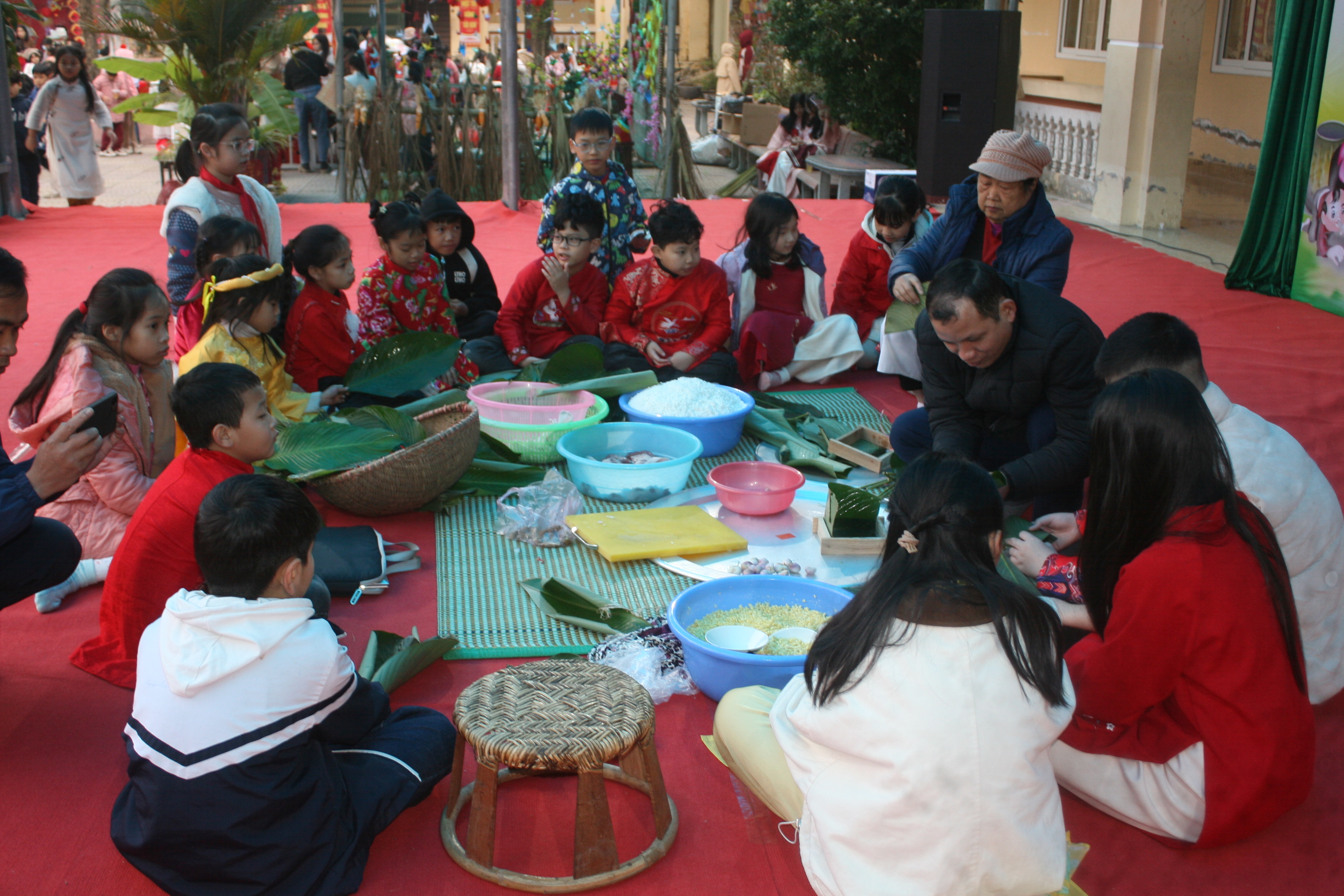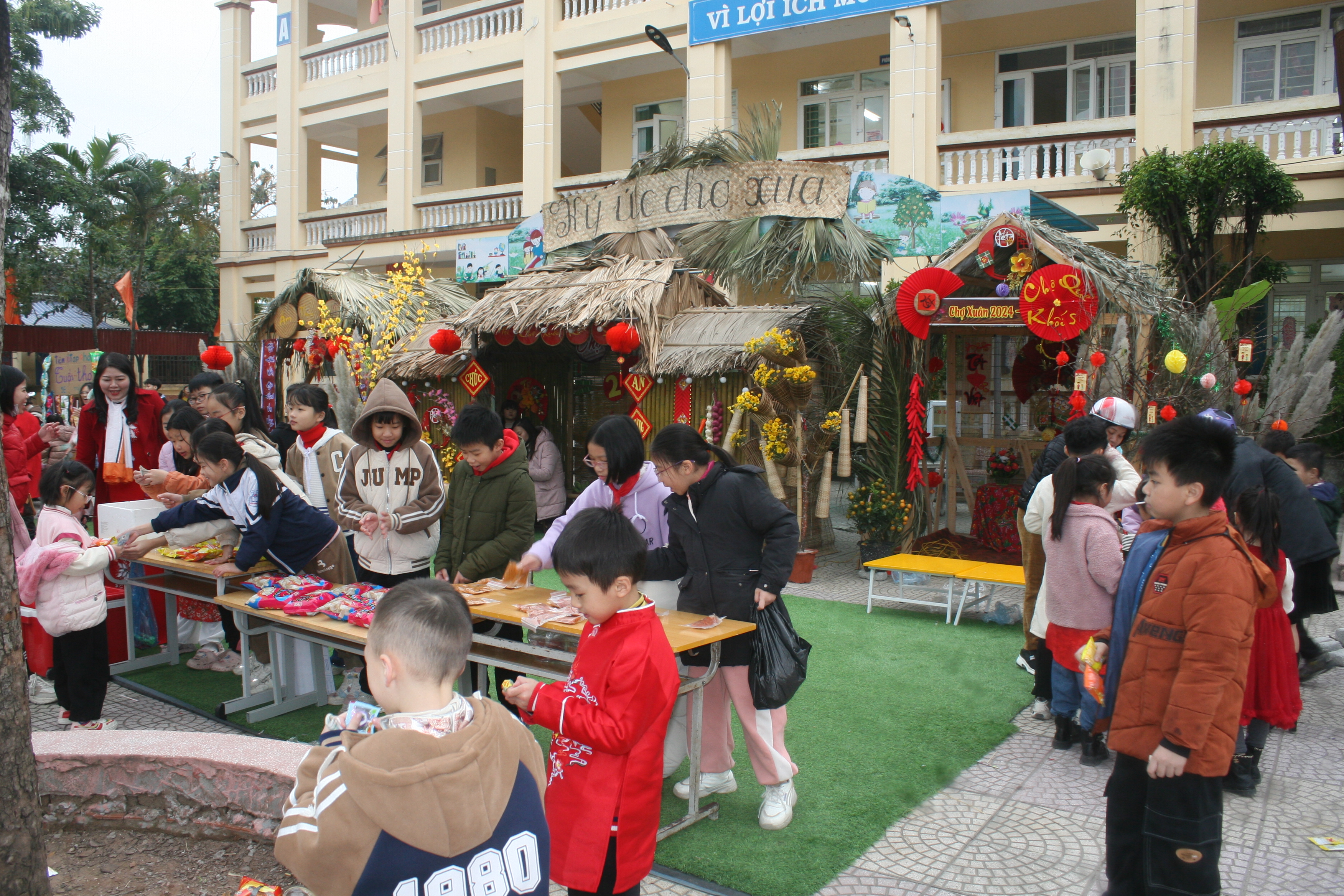 Tại đây, các em học sinh được trực tiếp tham gia chuỗi các hoạt động trải nghiệm chào Xuân Giáp Thìn, như: Trưng bày, giói thiệu gian hàng Tết, tái hiện không gian phiên chợ xưa, viết câu đối thư pháp, trang trí không gian Tết, trang trí cành đào, gấp lì xì; mở bán sản phẩm quê hương, cây xanh, cây hoa, món ăn ẩm thực; gói bánh chưng Tết; thi trang phục áo dài; chơi các trò chơi dân gian, giao lưu học hỏi thông qua các hoạt động mua, bán hàng hóa...