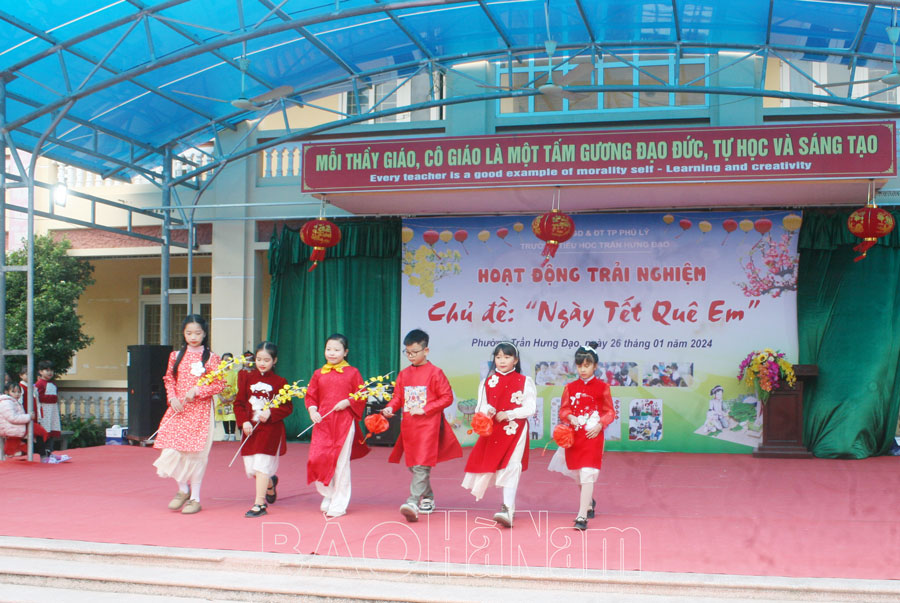 Hòa chung không khí rộn ràng chào đón Xuân Giáp Thìn năm 2024, ngày 26/1, Trường Tiểu học Trần Hưng Đạo (thành phố Phủ Lý) phối hợp với Hội Phụ huynh học sinh tổ chức hoạt động ngoại khóa với chủ đề: “Ngày Tết quê em” nhằm giúp cho học sinh trải nghiệm một không gian Tết cổ truyền ngay tại trường học.