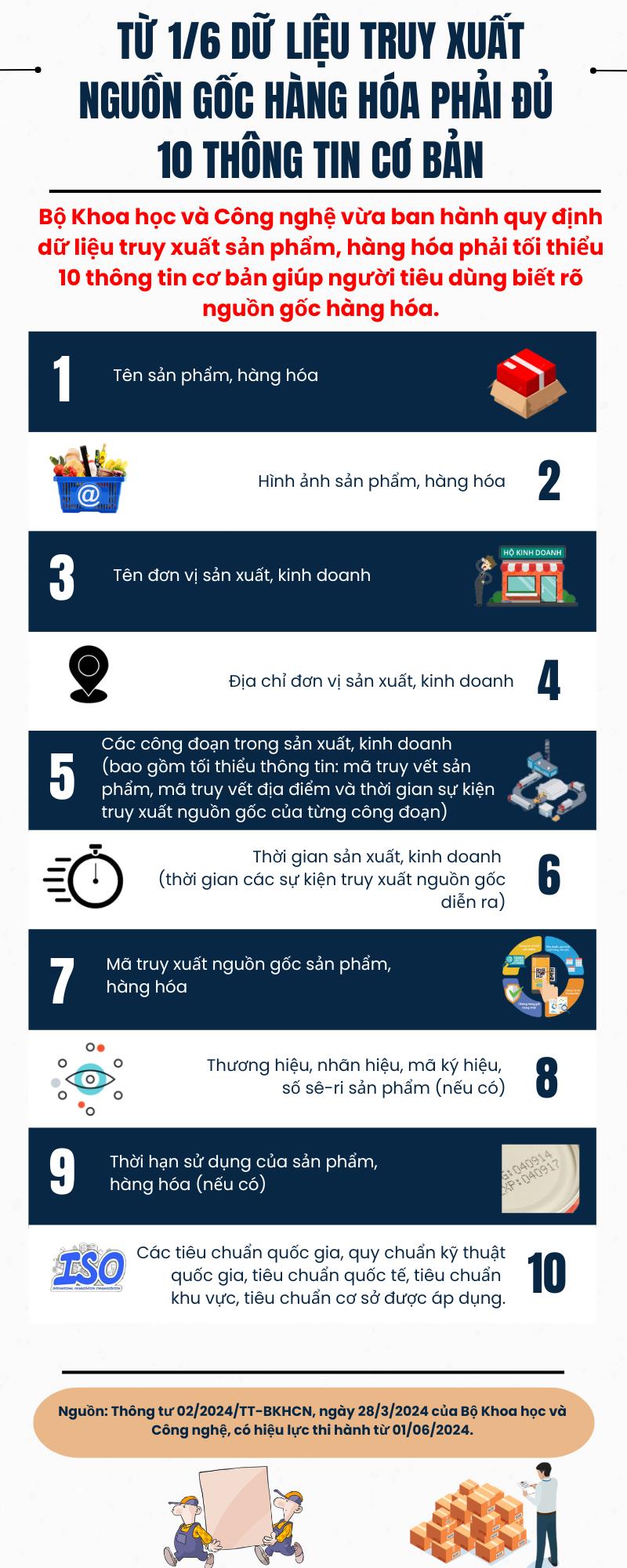 Từ 1/6 dữ liệu truy xuất nguồn gốc hàng hóa phải đủ 10 thông tin cơ bản