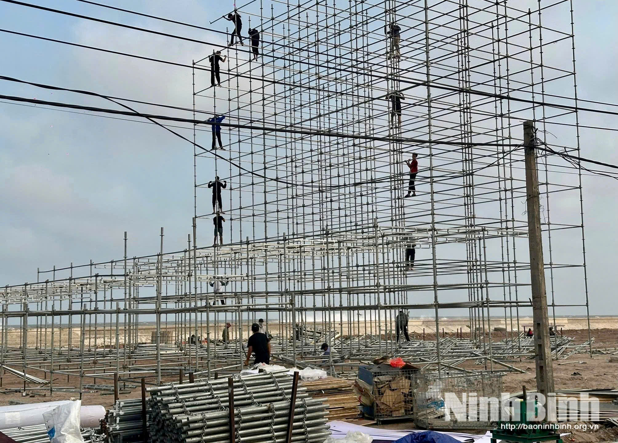 Sân khấu Lễ khai mạc Mùa du lịch biển năm 2026 tại Khu du lịch biển Thịnh Long đang được gấp rút lắp đặt. Ảnh: Trần Sắc