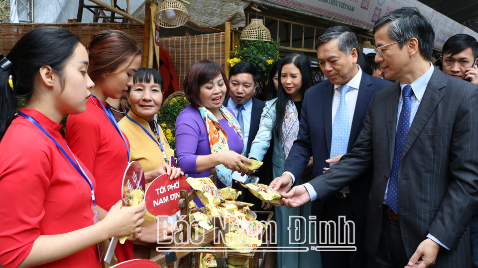 | Nhiều người dân thưởng thức phở tại các gian hàng phở Nam Định. |