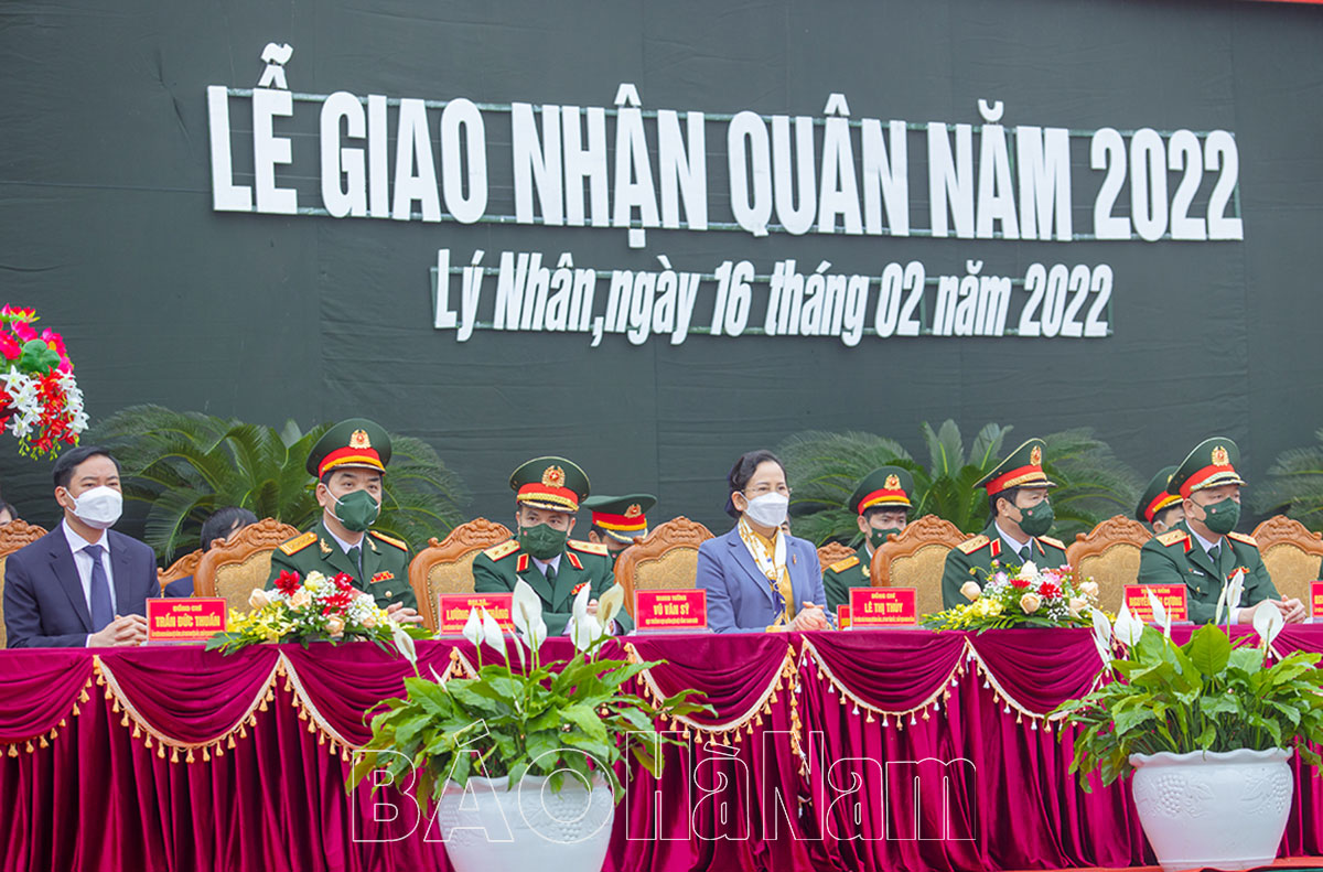 * Dự lễ giao nhận quân tại huyện Lý Nhân có các đồng chí: Thượng tướng Nguyễn Tân Cương, Ủy viên Trung ương Đảng, Ủy viên Thường vụ Quân ủy Trung ương, Tổng Tham mưu trưởng Quân đội nhân dân Việt Nam, Thứ trưởng Bộ Quốc phòng; Trung tướng Nguyễn Quang Ngọc, Ủy viên Trung ương Đảng, Ủy viên Quân ủy Trung ương, Tư lệnh Quân khu 3; Lê Thị Thủy, Ủy viên Trung ương Đảng, Bí thư Tỉnh ủy, Chủ tịch HĐND tỉnh; Trung tướng Vũ Văn Sỹ, Cục trưởng Cục Quân lực, Bộ Tổng Tham mưu, Bộ Quốc phòng; Thiếu tướng Đỗ Mạnh Vui, Chánh Văn phòng Bộ Tổng Tham mưu; thành viên Hội đồng NVQS tỉnh cùng đông đảo cán bộ, nhân dân địa phương.