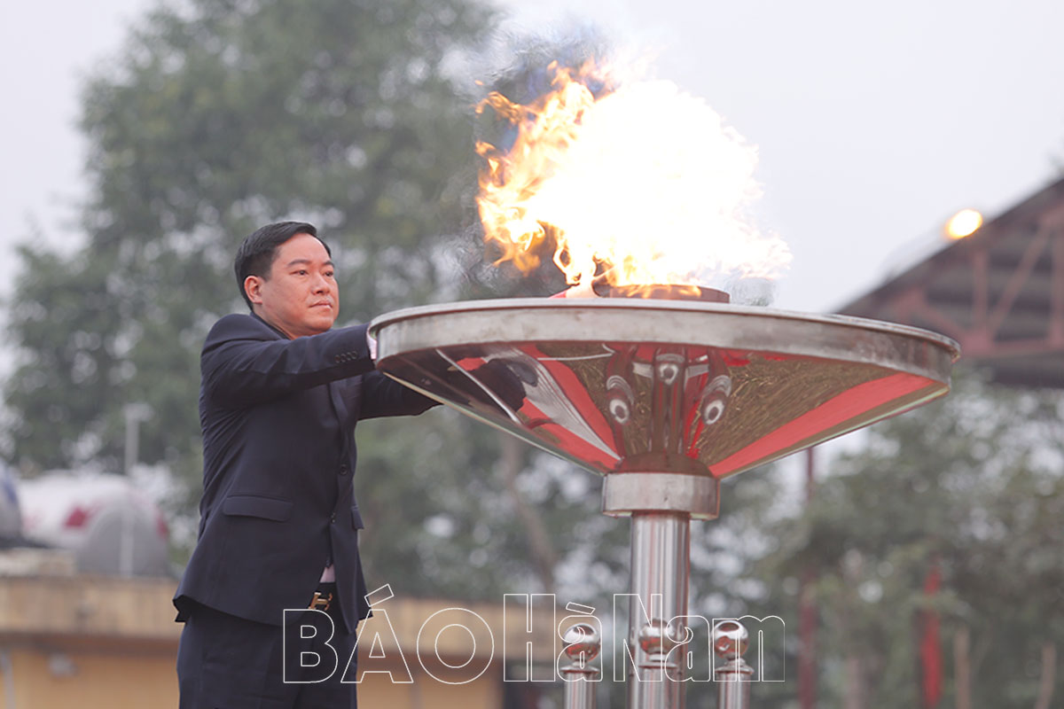 Buổi lễ giao quân của Kim Bảng diễn ra trang nghiêm, xúc động với đài lửa, tiếng trống rộn ràng, cờ và hoa tiễn thanh niên lên đường nhập ngũ năm 2022.