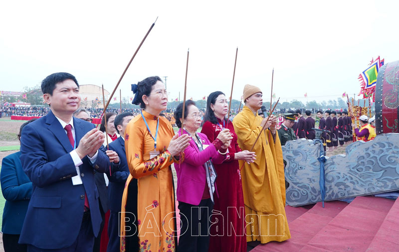Tới dự lễ hội có các đồng chí: Nguyễn Thị Doan, nguyên Ủy viên Trung ương Đảng, nguyên Phó Chủ tịch nước, Chủ tịch Trung ương Hội Khuyến học Việt Nam; Lê Thị Thủy, Ủy viên Trung ương Đảng, Bí thư Tỉnh ủy, Chủ tịch HĐND tỉnh; Đào Việt Trung, nguyên Ủy viên Trung ương Đảng, nguyên Chủ nhiệm Văn phòng Chủ tịch nước; Bùi Thị Thơm, Phó Chủ tịch Trung ương Hội Nông dân Việt Nam; Đinh Thị Lụa, Phó Bí thư Thường trực Tỉnh ủy; Trương Quốc Huy, Phó Bí thư Tỉnh ủy, Chủ tịch UBND tỉnh, Trưởng Đoàn đại biểu Quốc hội tỉnh; các đồng chí Ủy viên BTV Tỉnh ủy, Thường trực HĐND, lãnh đạo UBND tỉnh, Ủy ban MTTQ tỉnh; lãnh đạo các sở, ban, ngành, đoàn thể tỉnh; các cơ quan, doanh nghiệp trên địa bàn; lãnh đạo các huyện, thành phố trong tỉnh; lãnh đạo Thị ủy, UBND thị xã Duy Tiên; lãnh đạo xã Tiên Sơn cùng đông đảo bà con nhân dân và du khách thập phương.