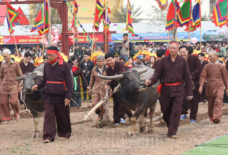 Chiều cùng ngày, Ban Tổ chức Lễ hội Tịch điền Đọi Sơn Xuân Giáp Thìn 2024 lần đầu tiên tổ chức Hội thi cày phục vụ nhân dân và du khách trẩy hội, vui xuân.