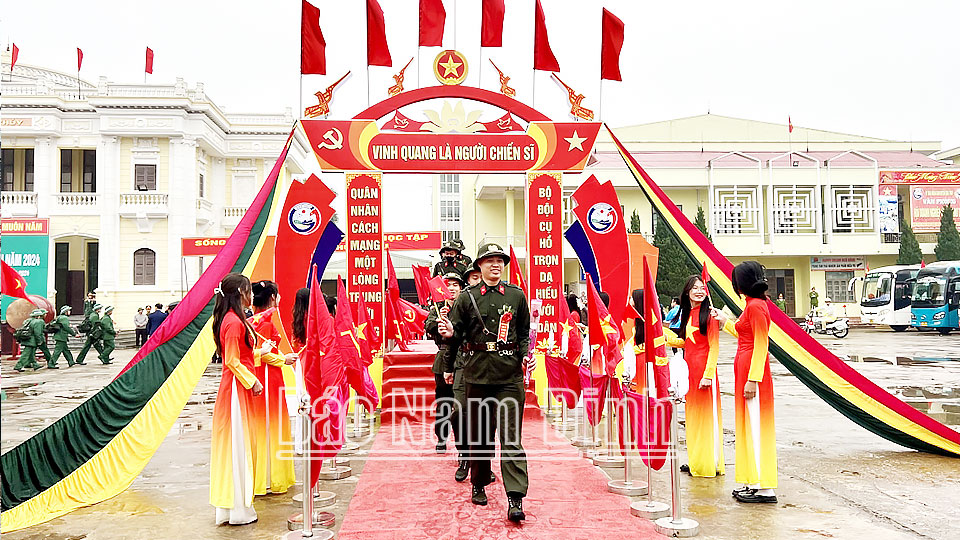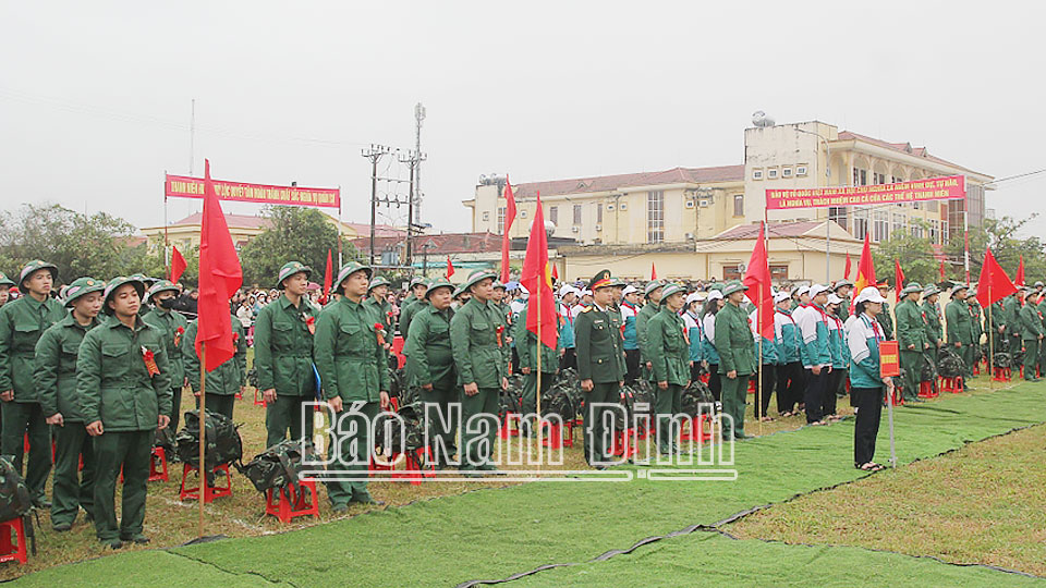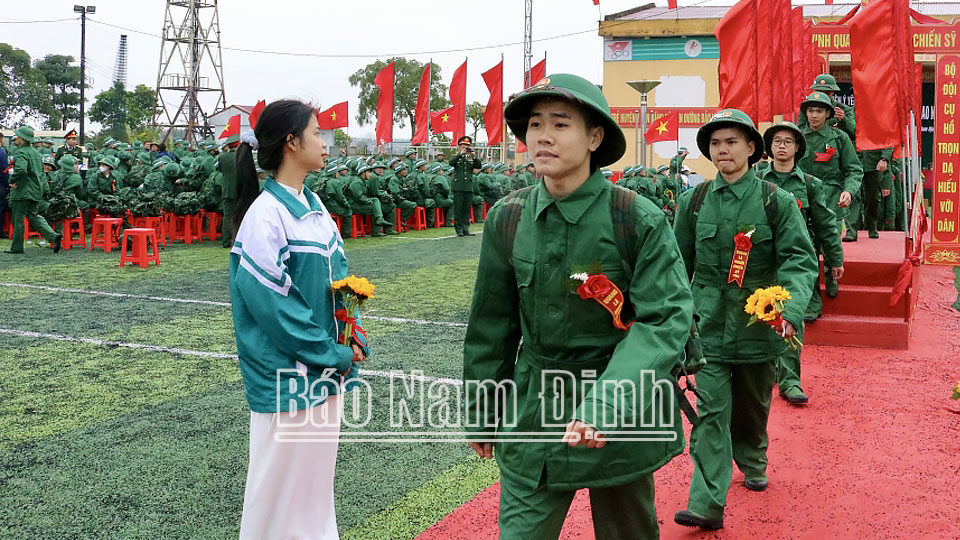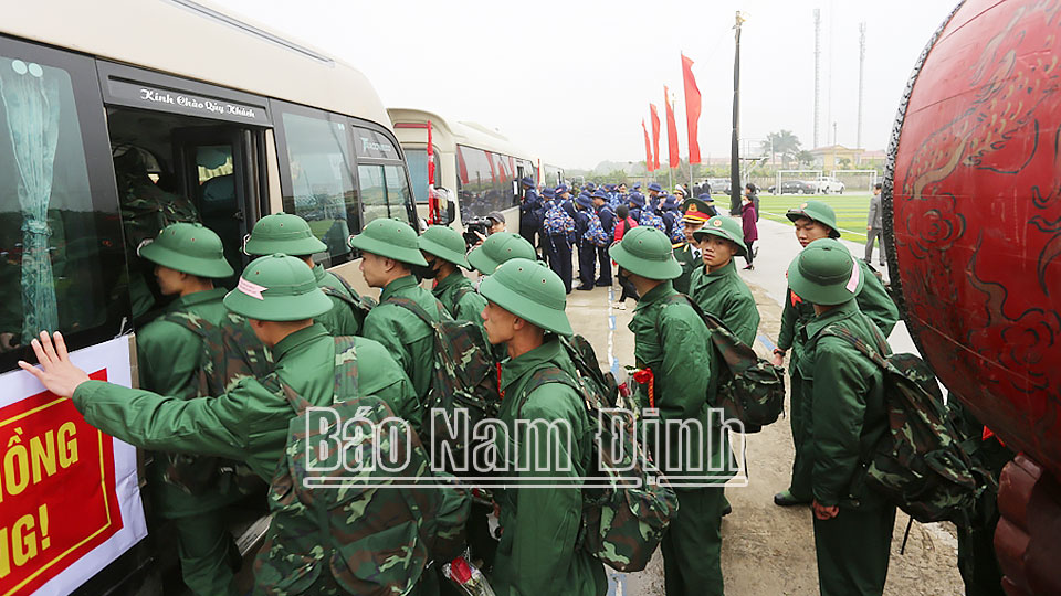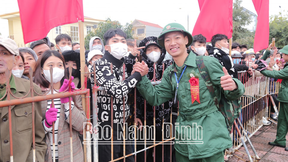 | Các tân binh huyện Nghĩa Hưng hăng hái lên đường thực hiện Nghĩa vụ Quân sự. |