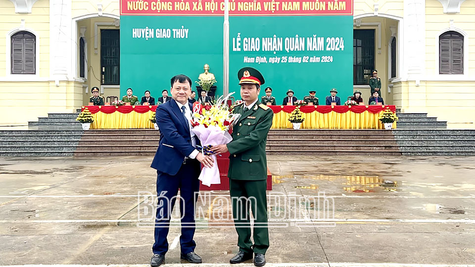 Tại lễ giao, nhận quân, đồng chí Phó Chủ tịch Thường trực UBND tỉnh Trần Anh Dũng; đồng chí Trưởng Ban Tổ chức Tỉnh ủy Nguyễn Văn Va cùng lãnh đạo huyện Vụ Bản đã tặng hoa, động viên, chúc các tân binh luôn phấn đấu học tập, rèn luyện tốt, chấp hành nghiêm kỷ luật, sẵn sàng nhận và hoàn thành tốt mọi nhiệm vụ được giao.